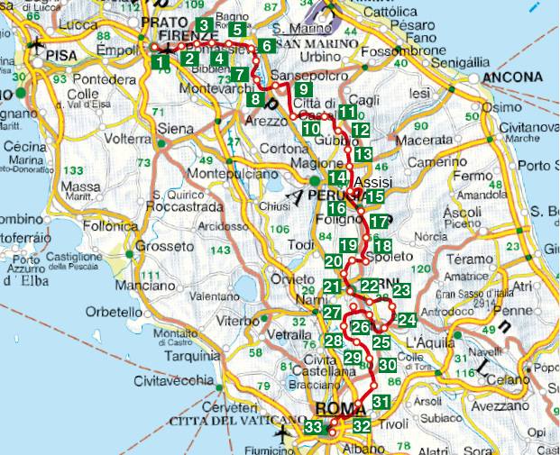 Florenz – Assisi – Rom. 33 Etappen. Mit GPS-Tracks