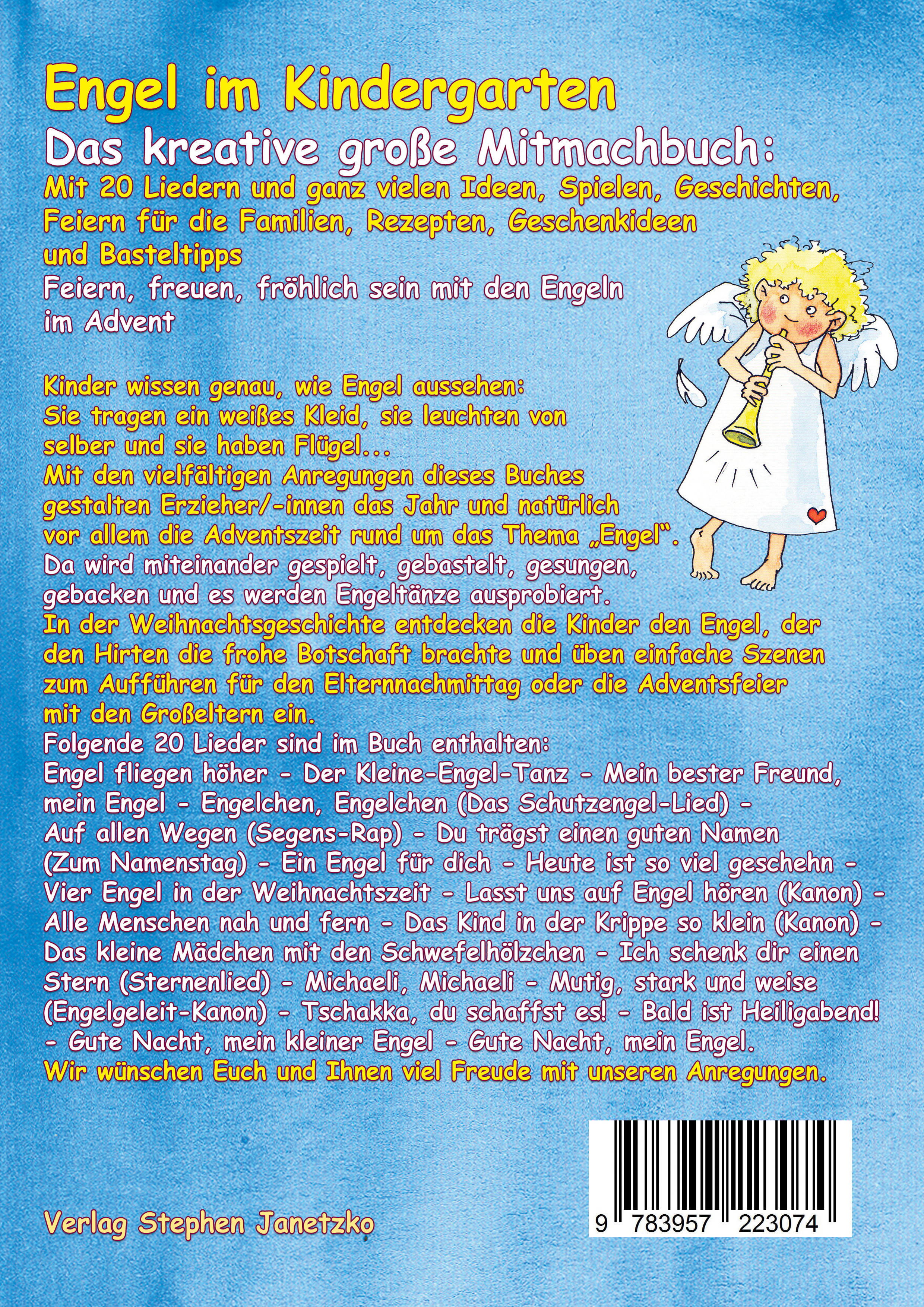 | Schlagworte | Advent • Engel • Engellieder • Familie • Kerzenschein • Kindergarten • Kinderlieder • Mitmachbuch • Schule • Stephen Janetzko • Weihnachten • Weihnachtslieder |