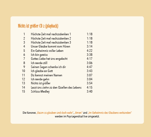 Im ausführlichen Booklet sind alle Liedtexte und die Rahmenhandlung des Pop-Legendicals abgedruckt, das sich hervorragend zur Aufführung mit Kinder- und Jugendgruppen und -chören eignet. Hierfür sorgt die beigefügte playback-CD für den professionellen Sound.