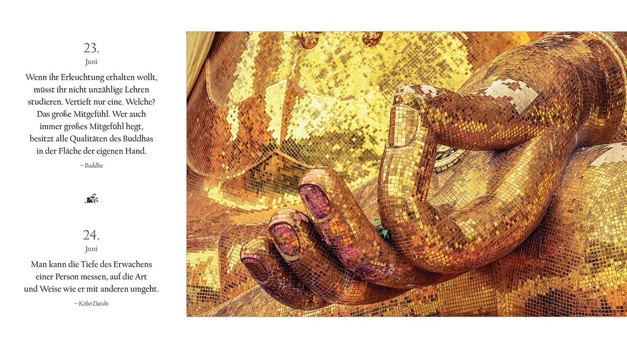 | Schlagworte | Achtsamkeit • Alltag • Asien • Besinnung • Bildband • Erkenntnis • Gedanken • Gelassenheit • Geschenkband • Glück • Impulse • Inspirationen • Lebensführung • Ruhe • Spiritualität • Text • Vordenker • Weisheit • Zitat • Zufriedenheit |