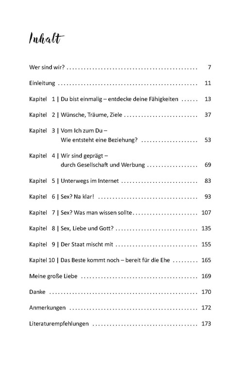 | Schlagworte | Aufklärung • Baustelle • Beziehung • Erste Liebe • Jugendkreis • Jugendliche • Liebesbeziehung • Ratgeber • Sex • Sexting • Sexualität • Teenager • Teenie • Teens • wahre Liebe wartet • YouPorn |