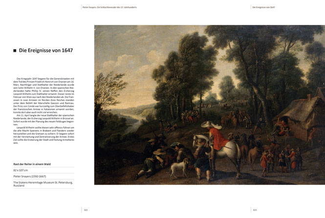 Es ist ein historischer Glücksfall, dass sich in einer solch bewegenden Zeit wie dem 17. Jahrhundert, sowohl in kultureller als auch kriegerischer Hinsicht, ebenso eine rasante Entwicklung der bildnerischen Darstellung aller Facetten des menschlichen Lebens vollzog. Nie zuvor in der Geschichte wurden so viele hochqualitative Gemälde zu den verschiedensten Bereichen des gesellschaftlichen Treibens geschaffen. Gegen Ende des 16. Jahrhunderts begann vor allem in den Niederlanden das sogenannte „Goldene Zeitalter der Malerei“. Viele der entstandenen Bilder zeigen auch Geschehnisse aus dem Krieg von 1568 bis 1648 zwischen dem Königreich Spanien und den nach Freiheit und Unabhängigkeit strebenden Niederlanden. Aber auch ein dazu parallel verlaufender gesamteuropäischer Konflikt, der Dreißigjährige Krieg von 1618 bis 1648, lieferte viele Motive für eine ganze Künstlergeneration.