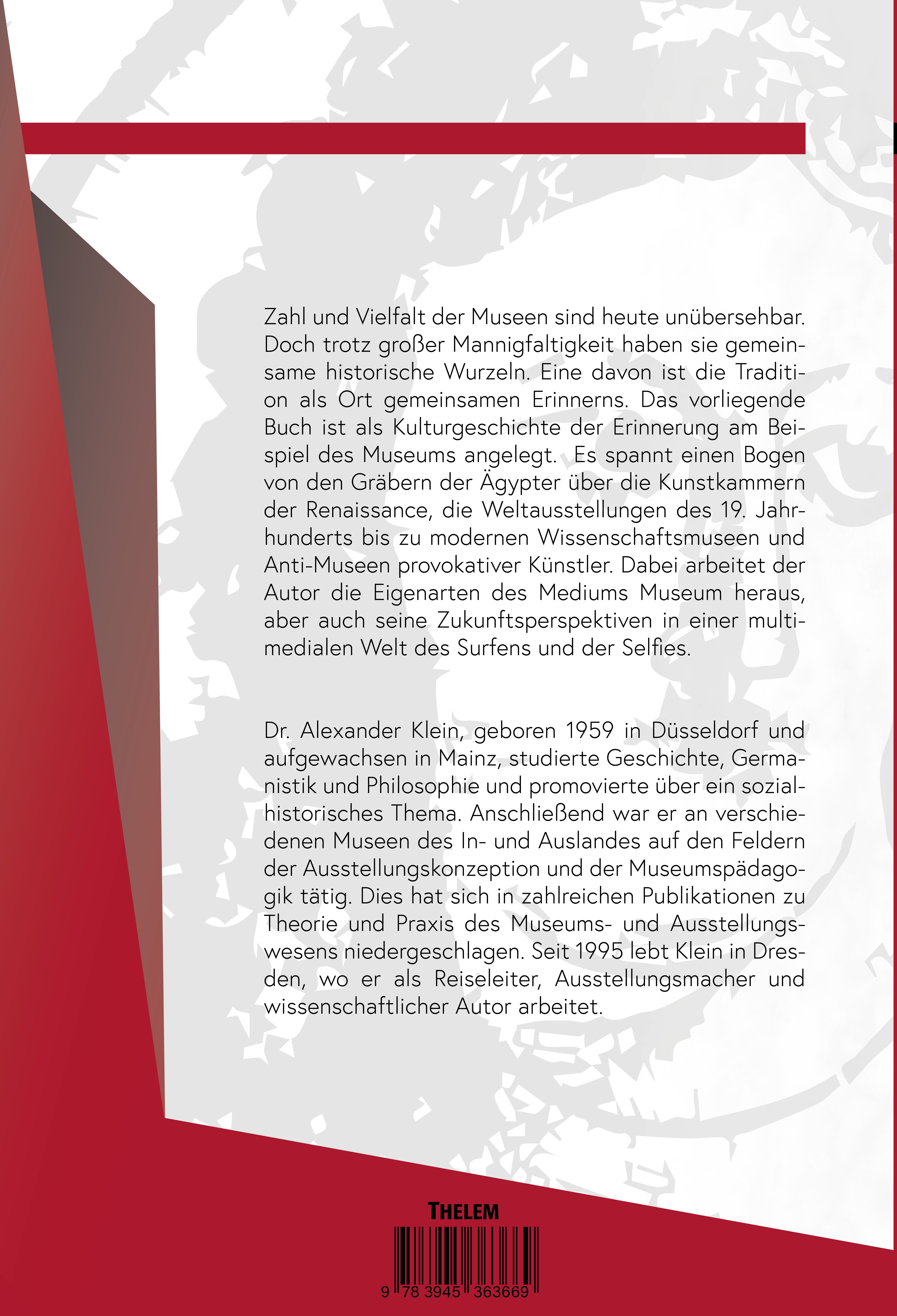 Zahl und Vielfalt der Museen sind heute unübersehbar. Doch trotz großer Mannigfaltigkeit haben sie gemeinsame historische Wurzeln. Eine davon ist die Tradition als Ort gemeinsamen Erinnerns. Das vorliegende Buch ist als Kulturgeschichte der Erinnerung am Beispiel des Museums angelegt. Es spannt einen Bogen von den Gräbern der Ägypter über die Kunstkammern der Renaissance, die Weltausstellungen des 19. Jahrhunderts bis zu modernen Wissenschaftsmuseen und Anti-Museen provokativer Künstler. Dabei arbeitet der Autor die Eigenarten des Mediums Museum heraus, aber auch seine Zukunftsperspektiven in einer multimedialen Welt des Surfens und der Selfies.