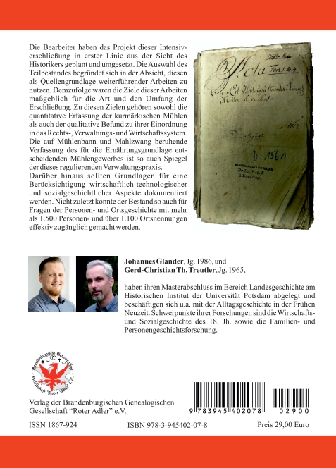 Erschließung. Zu diesen Zielen gehören sowohl die quantitative Erfassung der kurmärkischen Mühlen als auch der qualitative Befund zu ihrer Einordnung in das Rechts-, Verwaltungs- und Wirtschaftssystem.
