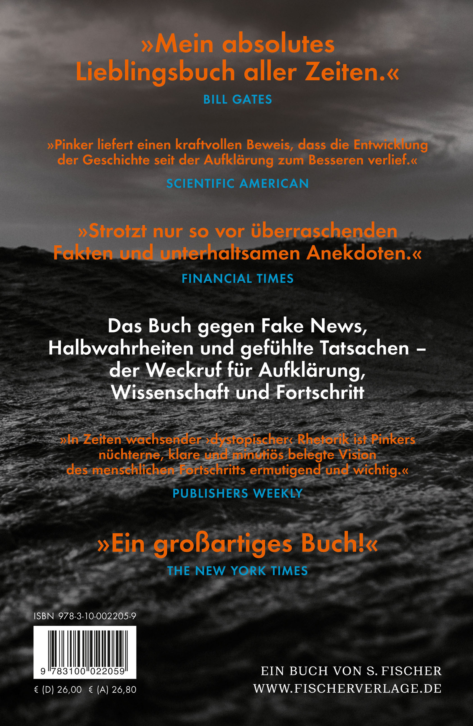 Denn Aufklärung und Wissenschaft bieten nach wie vor die Basis, um mit Vernunft und im Konsens alle Probleme anzugehen. Anstelle von Gerüchten zählen Fakten, anstatt überlieferten Mythen zu glauben baut man auf Diskussion und Argumente. Anschaulich und brillant macht Pinker eines klar: Vernunft, Wissenschaft, Humanismus und Fortschritt sind weiterhin unverzichtbar für unser Wohlergehen. Ohne sie wird die Welt auf keinen Fall zu einem besseren Ort für uns alle.