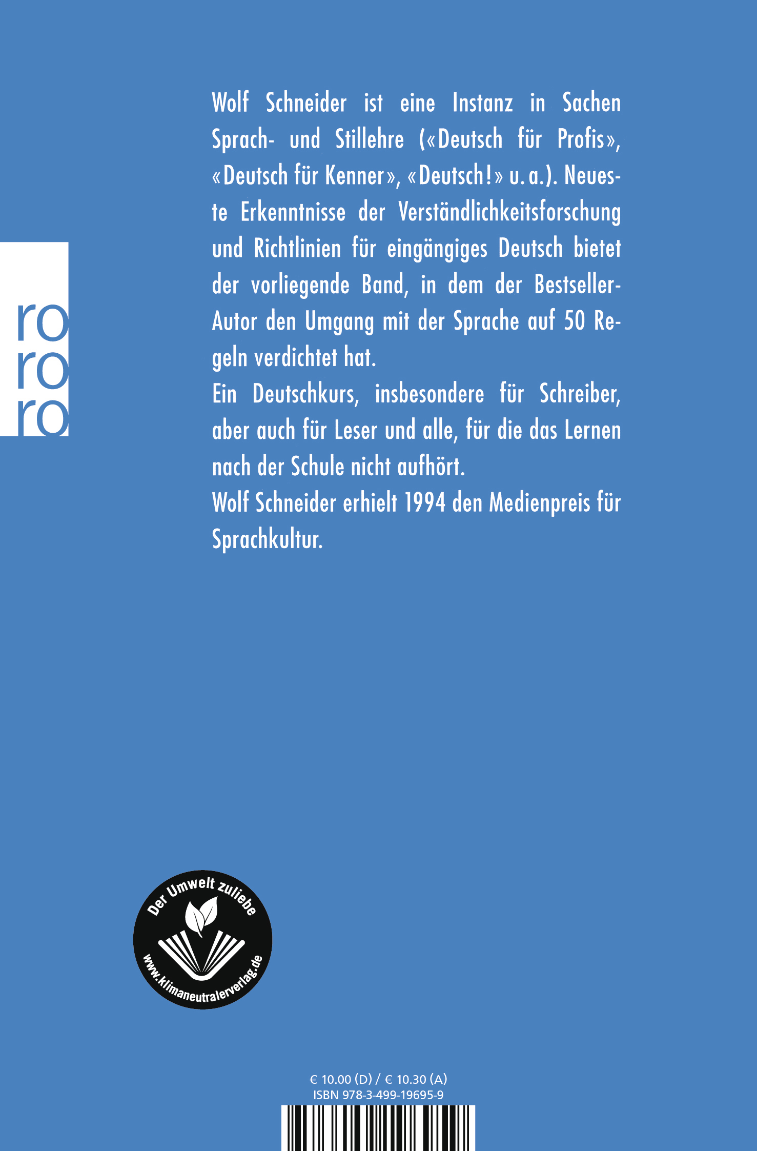 | Schlagworte | Deutsch • Deutsch /Sprachlehrbücher • Gutes Deutsch • Journalismus • Journalistik • Schreiben • Schreibstil • Sprache • Stil • Stilistik • Stilistik /Ratgeber • Taschenbuch / Sachbücher/Kunst, Literatur/Sprache/Allgemeines, Nachschlagewerke • TB/Deutsche Sprachwissenschaft, Deutschsprachige Literaturwissenschaft • TB/Sachbücher/Kunst, Literatur/Sprache/Allgemeines, Nachschlagewerke • Texte |