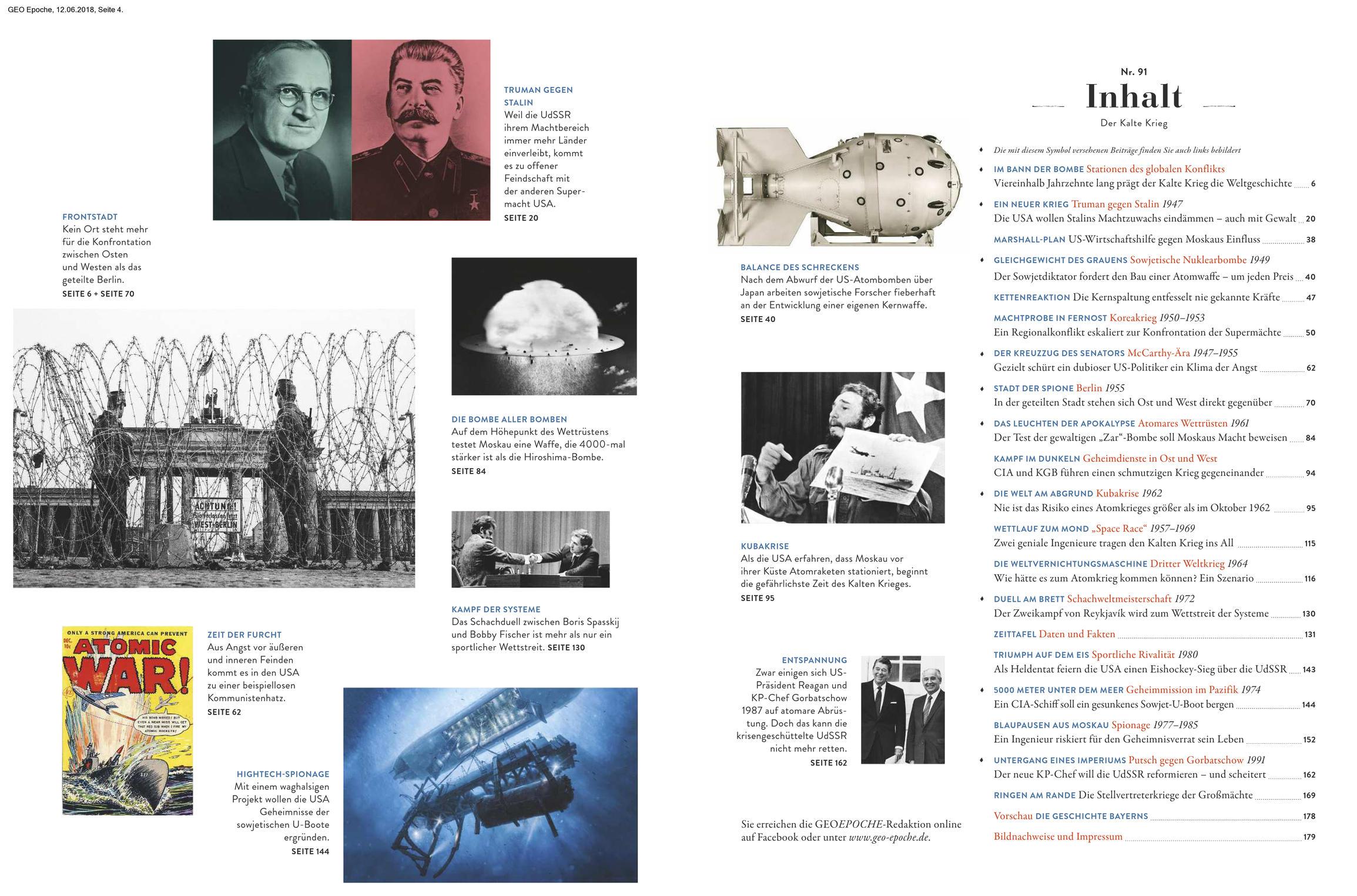 | Schlagworte | 1947-1991 • Atombomben • Epoche • Geo • Gorbatschow • Hiroshima • Kalter Krieg • Koreakrieg • Kubakrise • Marshall-Plan • McCarthy • Nuklearbombe • Schachweltmeisterschaft • Space race • Supermacht • Truman • UdSSR • Wettrüsten • Zar-Bombe |