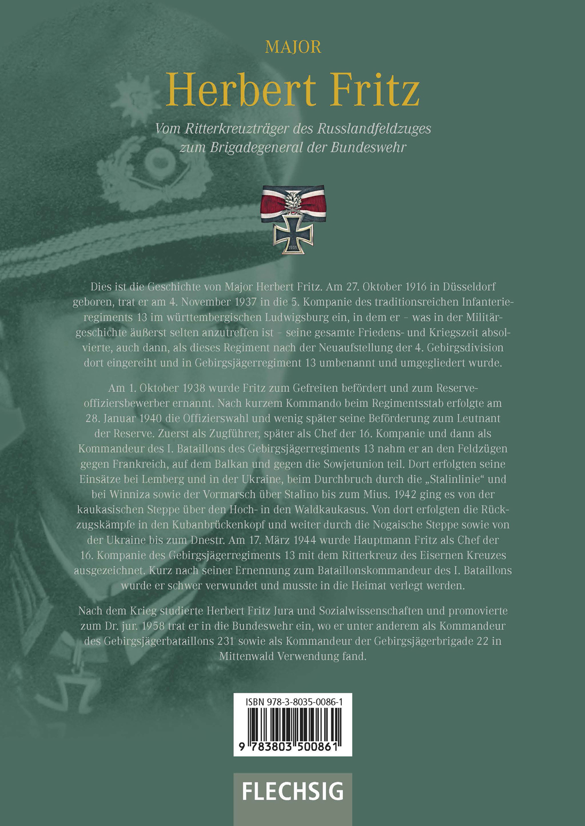 Dies ist die Geschichte von Major Herbert Fritz. Am 27. Oktober 1916 in Düsseldorf geboren, trat er am 4. November 1937 in die 5. Kompanie des traditionsreichen Infanterieregiments 13 im württembergischen Ludwigsburg ein, in dem er - was in der Militärgeschichte äußerst selten anzutreffen ist - seine gesamte Friedens- und Kriegszeit absolvierte, auch dann, als dieses Regiment nach der Neuaufstellung der 4. Gebirgsdivision dort eingereiht und in Gebirgsjägerregiment 13 umbenannt und umgegliedert wurde.