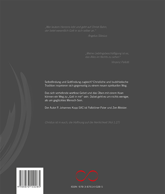 Christlicher Glaube und Zen: In den beiden Bänden dieses Buch-Sets von Pallottiner-Pater und Zen-Meister P. Johannes Kopp SAC und seinem langjährigen Schüler, P. Paul Rheinbay SAC, ist zu lesen, wie sich die spirituellen Traditionen gegenseitig inspirieren und damit einen möglichen Weg zu „Gott in mir“ weisen können. „Mit dem Leib glauben“ ergänzt und vertieft die Inhalte von „Gebet als Selbstgespräch“.