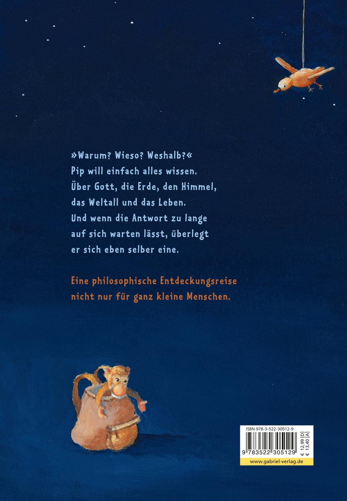 Pip fragt gern und viel und am liebsten beantwortet er sich die Fragen gleich selbst. Je älter er wird, um so weiter wird auch sein Horizont und bald stellt er seiner Mama Fragen über Gott und den Himmel, das Leben und die Liebe, bei denen oft auch die Erwachsenen nicht mehr weiterwissen.