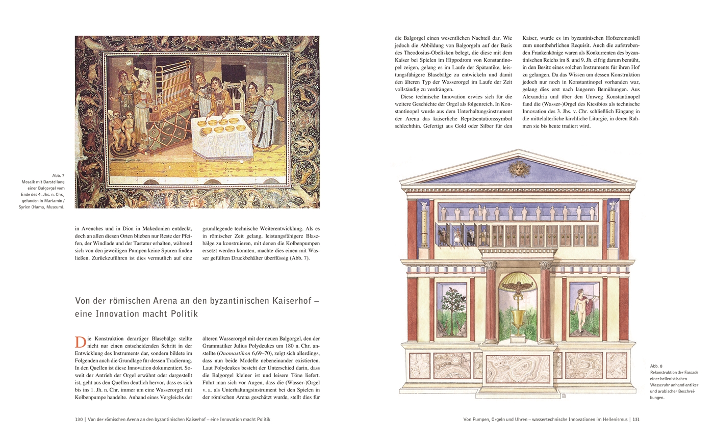 6 EINLEITUNGvon Gerd Graßhoff und Michael Meyer8 TECHNISCHE UND SOZIALE INNOVATIONENvon Svend Hansen und Jürgen Renn20 DIE TEXTILE REVOLUTIONvon Wolfram Schier und Susan Pollock34 MEILENSTEINE DES WASSERBAUSvon Jonas Berking, Anette Schombergund Brigitta Schütt47 RINDER UND RÄDER - ZWEI INNOVATIVE ENTWICKLUNGEN, DIE DAS LEBEN IN DER STEPPE VERÄNDERTEN?von Elke Kaiser60 WAAGE UND WANDEL - WIE DAS WIEGEN DIE BRONZEZEIT PRÄGTvon Jochen Büttner79 INNOVATION EISEN - VOM HETHITERREICH ÜBER DAS RUSSIGE ELBA BIS NACH MITTELEUROPAvon Wiebke Bebermeier, Fabian Becker, Markolf Brumlich u. a.96 INNOVATION DER ZEIT: EVOLUTION ANTIKER SONNENUHRENvon Gerd Graßhoff108 DIE EINFÜHRUNG DER ZIEGELBAUWEISE IN ROMvon Ulrike Wulf-Rheidt (_)124 VON PUMPEN, ORGELN UND UHREN - WASSERTECHNISCHE INNOVATIONEN IM HELLENISMUSvon Anette Schomberg136 Anmerkungen137 Literatur143 Bildnachweis144 Adressen der Autoren00_