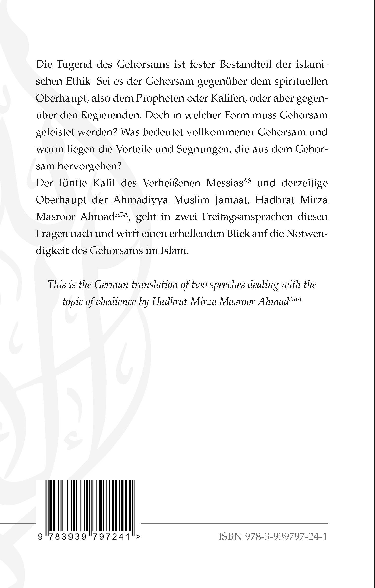 Die Tugend des Gehorsams ist fester Bestandteil der islamischen Ethik. Sei es der Gehorsam gegenüber dem spirituellen Oberhaupt, also dem Propheten oder Kalifen, oder aber gegenüber den Regierenden. Doch in welcher Form muss Gehorsam geleistet werden? Was bedeutet vollkommener Gehorsam und worin liegen die Vorteile und Segnungen, die aus dem Gehorsam hervorgehen? Der fünfte Kalif des Verheißenen Messias und derzeitige Oberhaupt der Ahmadiyya Muslim Jamaat, Hadhrat Mirza Masroor Ahmad, geht in zwei Freitagsansprachen diesen Fragen nach und wirft einen erhellenden Blick auf die Notwendigkeit des Gehorsams im Islam.