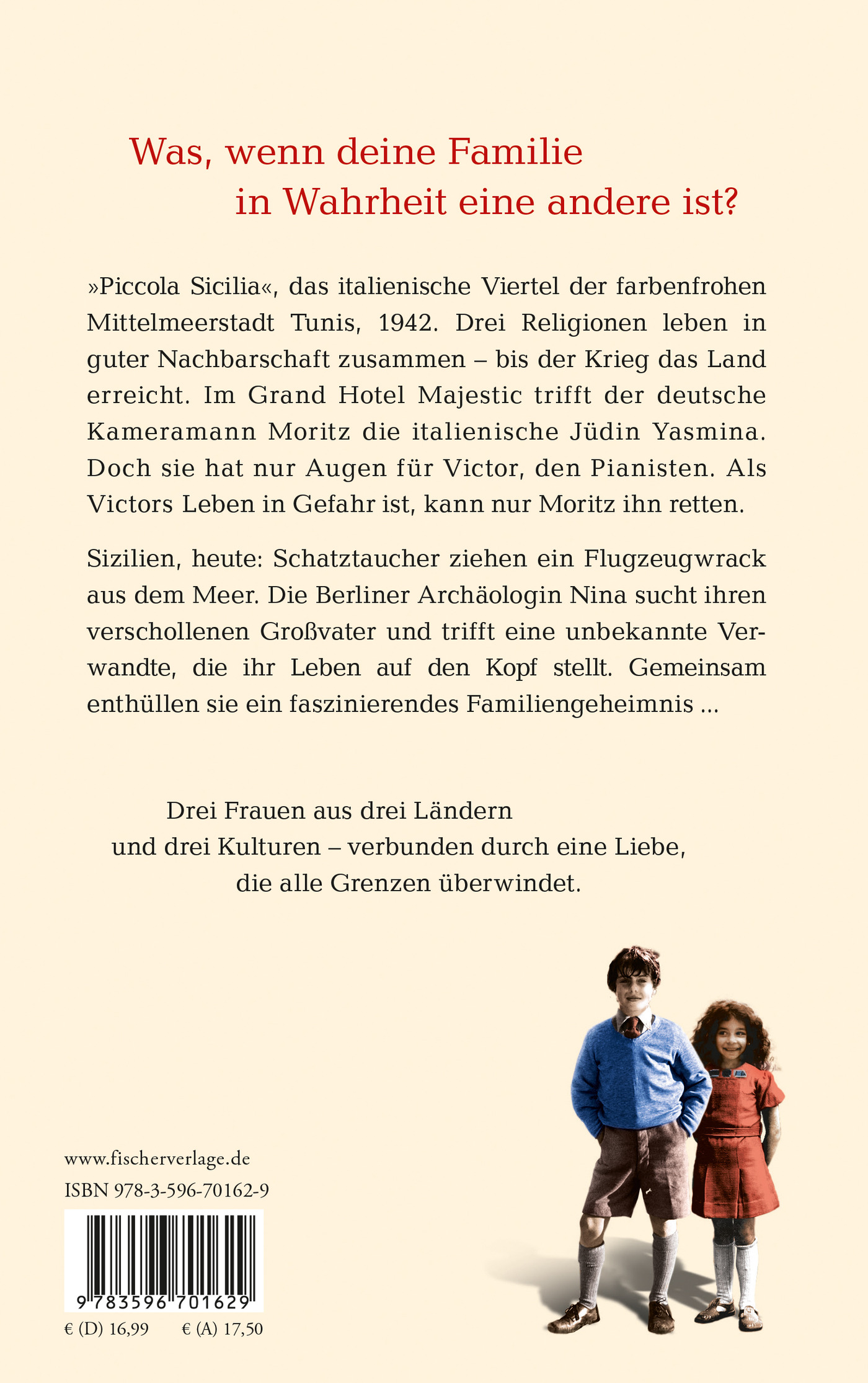 | Schlagworte | Afrikafeldzug • Anspruchsvolle Literatur • Bella Germania • Bestseller • Bestseller-Autor • Casablanca • Familiensaga • Fortsetzung von Piccola Sicilia • Fotograf • Frauenschicksal • friedliches Zusammenleben der Religionen • Generationenroman • Geschenk • Hotel Majestic • Jaffa Road • Kriegsberichterstatter • Kriegsfotograf • Kriegsreporter • Liebe • Sizilien • Terra Mediterranea • Tunesien • Tunis • verschollen • Zweiter Weltkrieg |