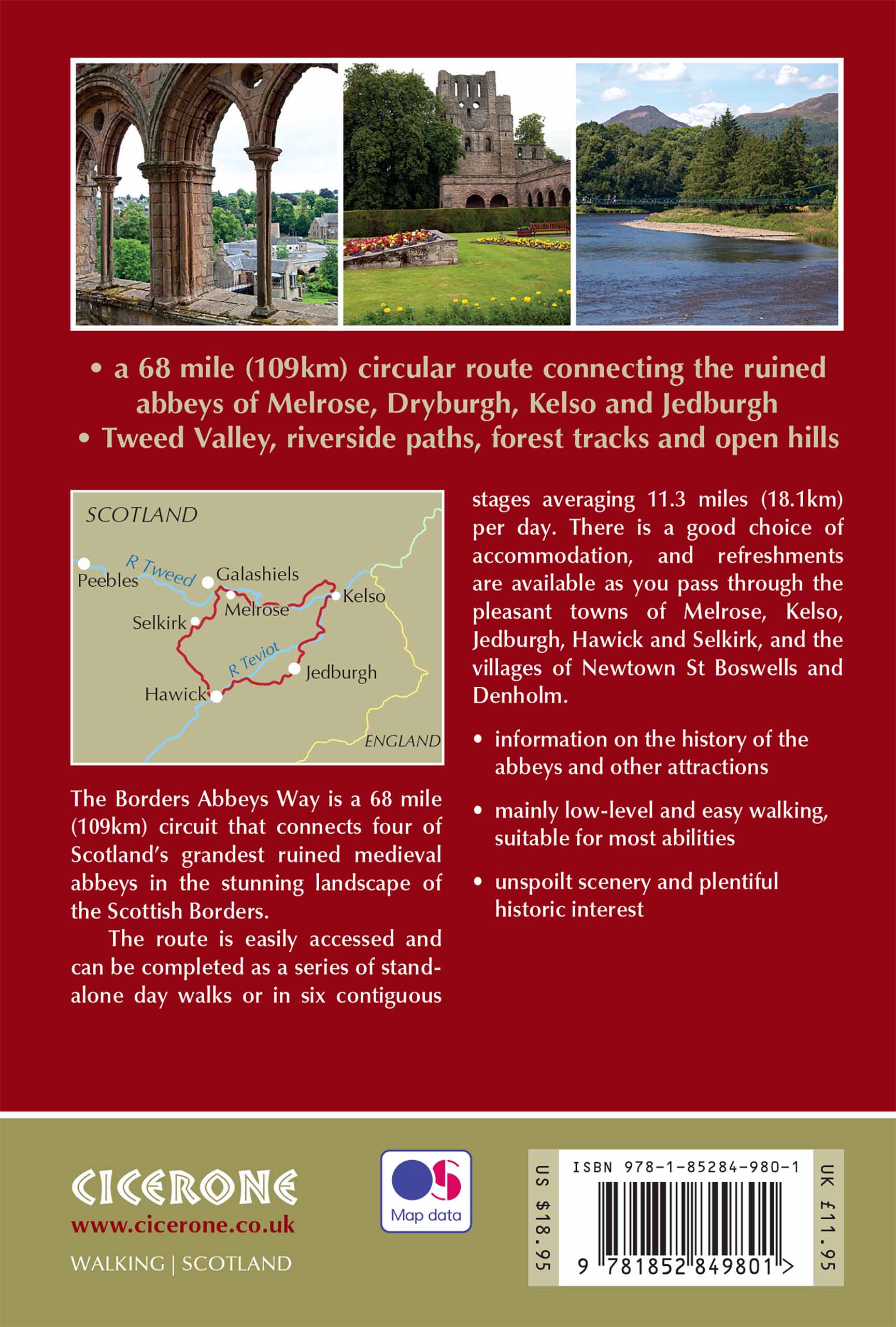 This guidebook provides a comprehensive description of the route, which passes through the towns of Melrose, Kelso, Jedburgh, Hawick and Selkirk and the villages of Denholm and Newton St Boswells. In addition to clear route description and OS 1:50,000 mapping extracts, the guidebook also includes information about the history of the Borders abbeys, the ever-intriguing Borders reivers, and the region's geology and agriculture. Invaluable practical information relating to accommodation, transport, mapping and public access is also included.