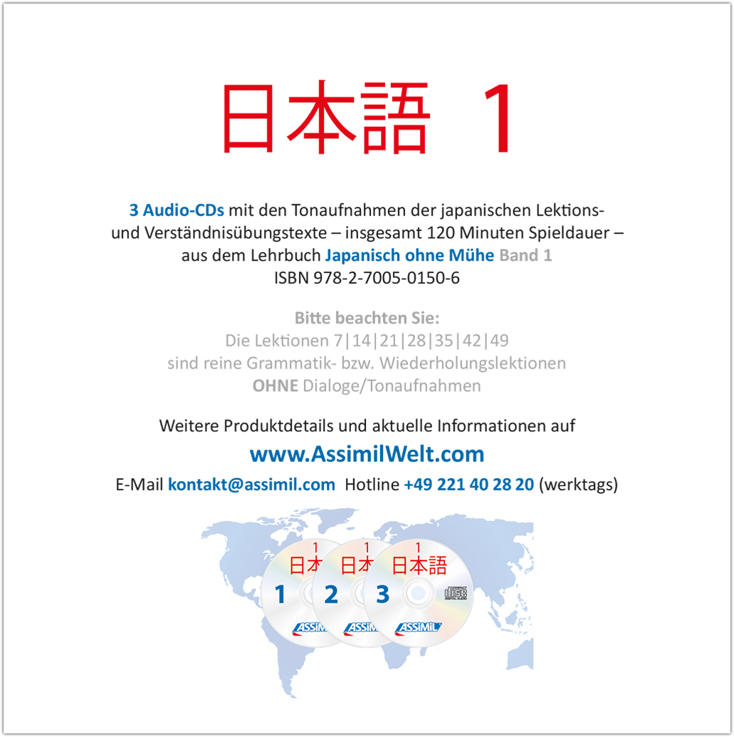 Die Audio-CDs (120 Minuten Spieldauer) enthalten die japanischen Tonaufnahmen (Lektionstexte und Verständnisübungen) passend zum Lehrbuch "Japanisch ohne Mühe Band 1". Die Aufnahmen wurden ausschließlich mit Muttersprachlern (allesamt professionelle Sprecherinnen und Sprecher) produziert. Die Sprechgeschwindigkeit ist dem jeweiligen Lektionsniveau angepasst.