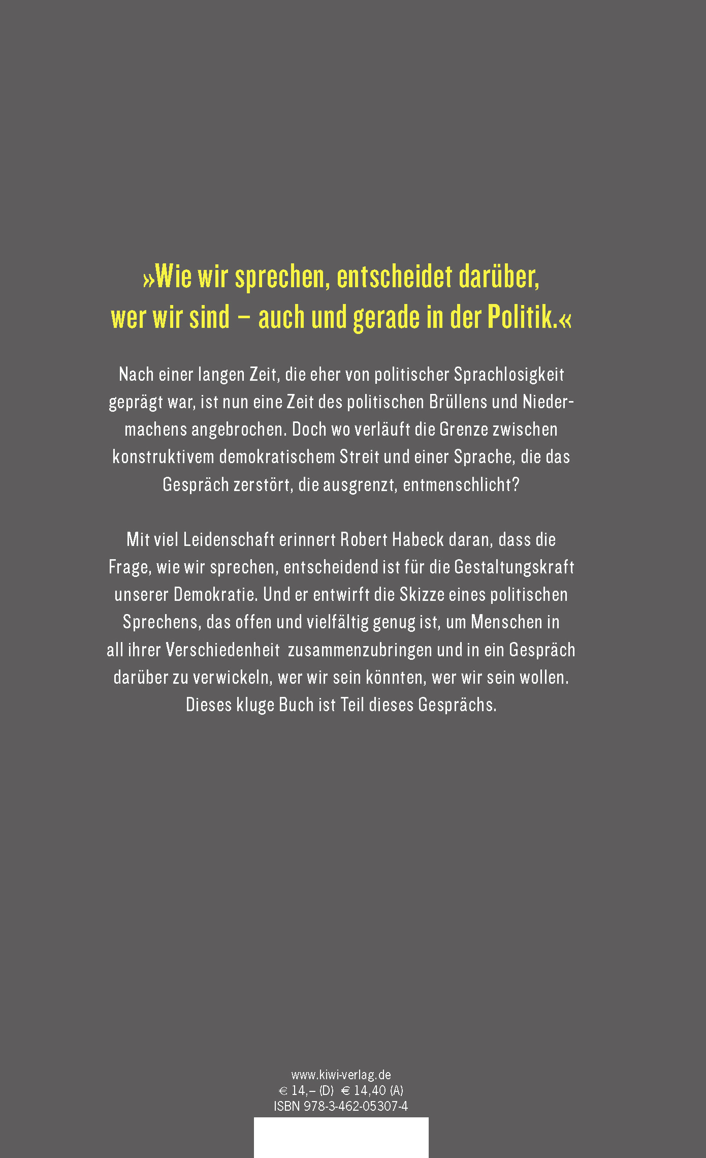 Klug, leidenschaftlich und anschaulich geht Grünen-Chef Robert Habeck in seinem neuen Buch dem Zusammenhang von Sprache und Politik nach, erkundet den Unterschied zwischen totalitärer und offener Sprache - und skizziert damit eine Poetik des demokratischen Sprechens, die Mut macht, sich einzumischen und für unsere Demokratie einzustehen.
