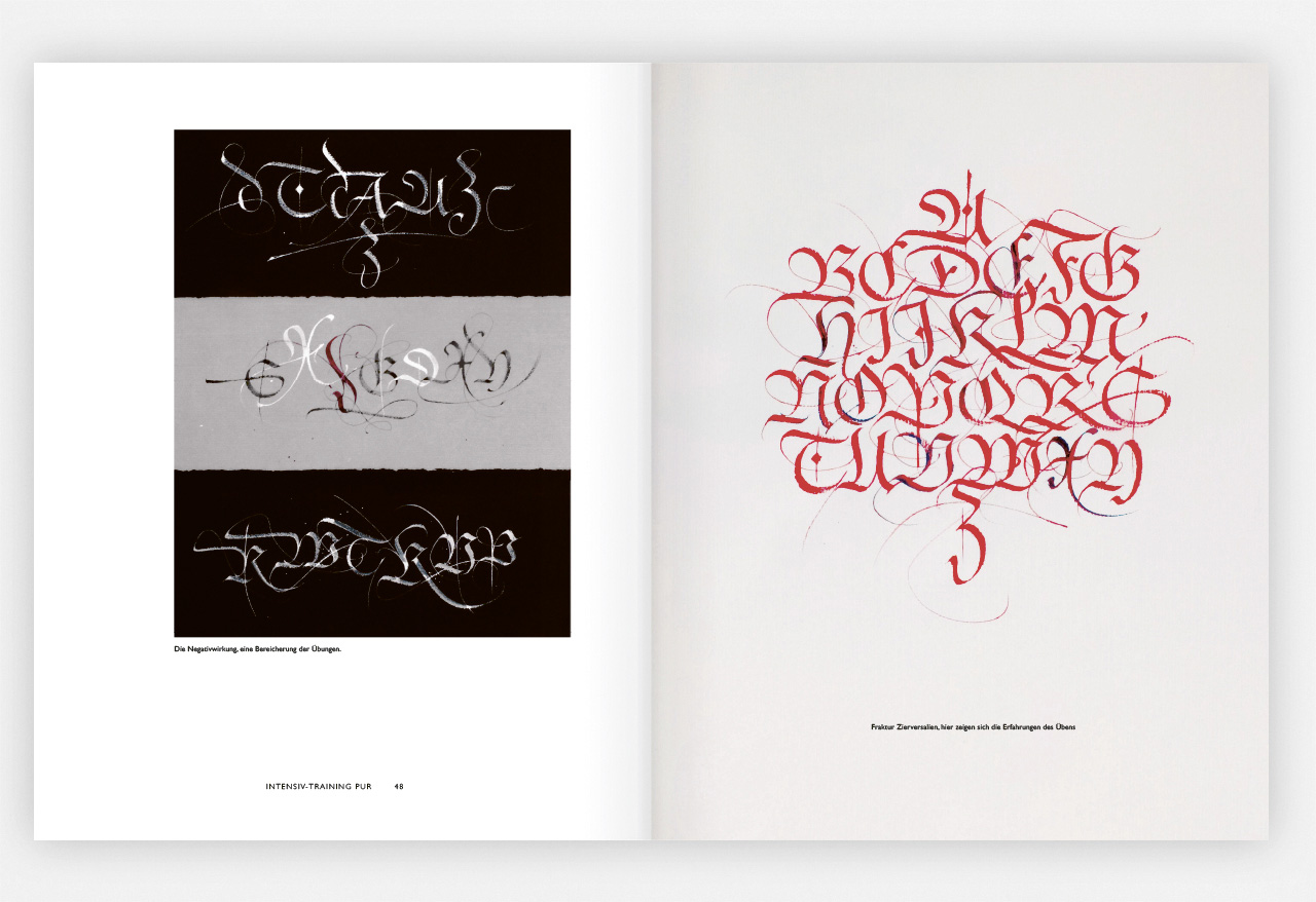 Als Nachfolger seines erfolgreichen Kalligrafie Intensivtraining haben wir uns von ihm ein Buch gewünscht, das etwas weniger Theorie beinhaltet, dafür Raum für Übungen zum Spiel mit der Feder mit den Formen der Buchstaben. Etwas weniger Geschichte, dafür mehr Muster-Alphabete. Eine Kalligrafie-Meisterklasse, wie sie handverlesene Meisterschüler an Kunstakademien nach Studienabschluss besuchen dürfen.