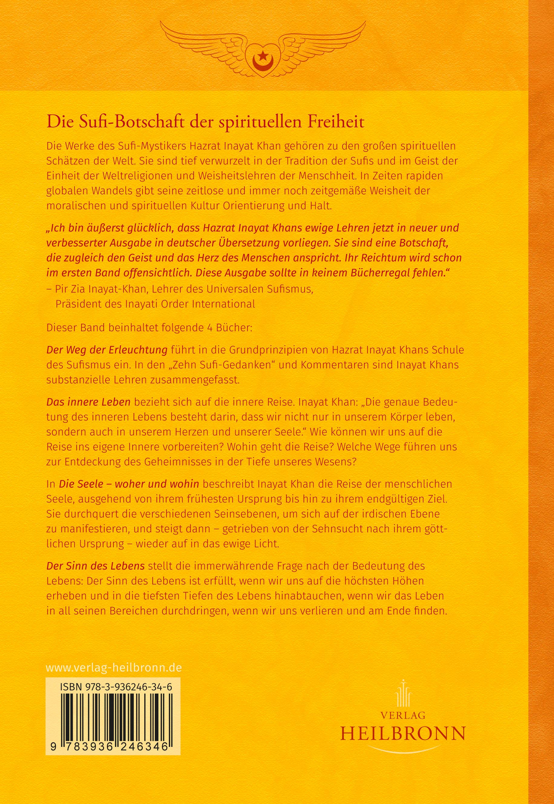Der Weg der Erleuchtung führt die Leser und Leserinnen in die Grundprinzipien von Hazrat Inayat Khans Schule der spirituellen Freiheit ein. Ein wichtiger Teil zu Beginn des Buches "Der Weg der Erleuchtung besteht aus Kommentaren zu den "Zehn Sufi-Gedanken", in denen er die wesentlichen Themen seiner Sufi-Lehre zusammenfasst. Das innere Leben bezieht sich auf die Reise im Innern. Welche Vorkehrungen müssen die Reisenden treffen? Wohin führt die Reise? Hazrat Inayat Khan schreibt: "Die genaue Bedeutung des inneren Lebens besteht darin, dass wir nicht nur in unserem Körper leben, sondern auch in unserem Herzen und unserer Seele." In Die Seele - woher und wohin beschreibt Inayat Khan die Reise der menschlichen Seele, ausgehend von ihrem frühesten Ursprung bis hin zu ihrem endgültigen Ziel. Zweifellos weisen diese Lehren einen Bezug zu den traditionellen Darstellungen der Sufis über das Leben vor der Geburt und nach dem Tod auf, doch zeichnet sich die Beschreibung der Seelenreise durch ungewöhnliche Frische, Anschaulichkeit und Detailgenauigkeit aus. In Der Sinn des Lebens behandelt Inayat Khan die immerwährende Frage nach der Bedeutung des Lebens. Er erklärt, dass die gesamte Manifestation aus der Sehnsucht Gottes, erkannt zu werden, hervorgeht und dass alle Unternehmungen des Menschen letzten Endes in den Weg einmünden, der zu Gott führt. In einprägsamen Worten stellt er fest: "Der Sinn des Lebens wird erfüllt, wenn wir zu den höchsten Höhen des Lebens aufsteigen und in die tiefsten Tiefen des Lebens hinabtauchen, wenn wir unseren Horizont erweitern, in alle Bereiche des Lebens vordringen, uns selbst verlieren und am Ende uns selbst finden." Buch 1 der 13-bändigen Jubiläumsausgabe. Neu überarbeitete Edition mit historisch kritischen Textkorrekturen in aktualisierter, gendergerechter Sprache.