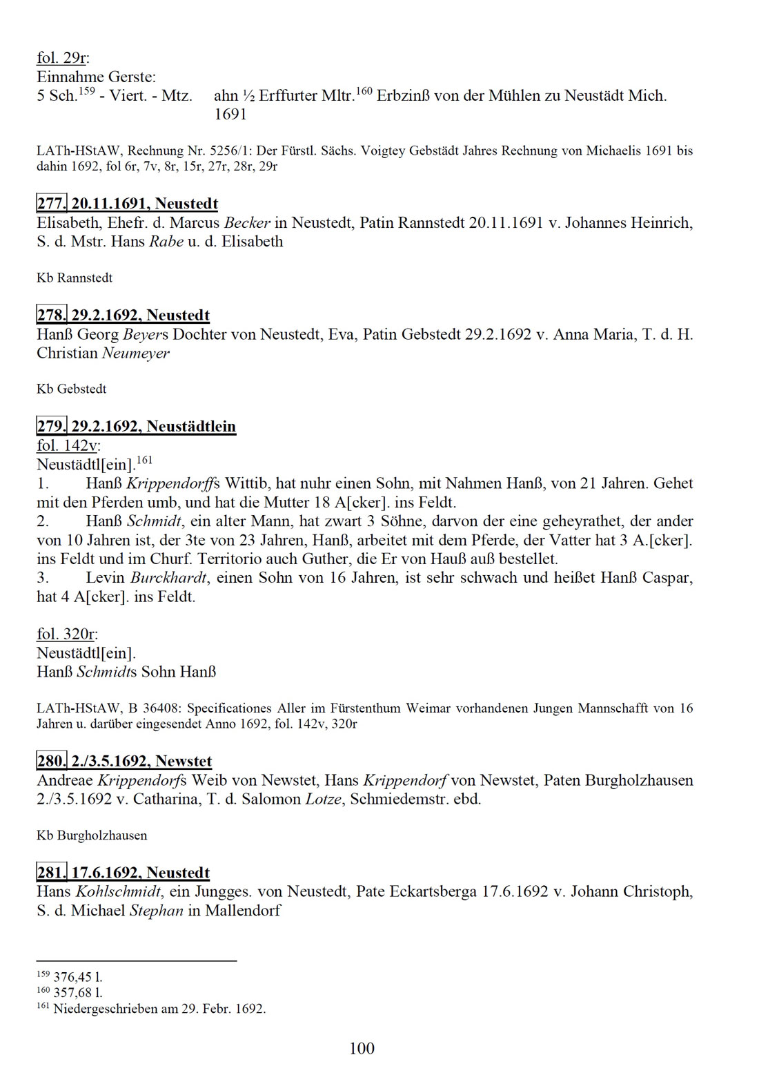 Einwohner von NEUSTEDT 1486-1750 - Kreis Weimarer Land
