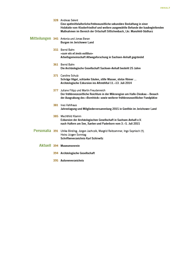 | Schlagworte | Archäologie • Archäologische Gesellschaft • Forschungsgeschichte • Mittelalter • Neolithikum • Sachsen-Anhalt • Stadtarchäologie • Trichterbecherkultur |