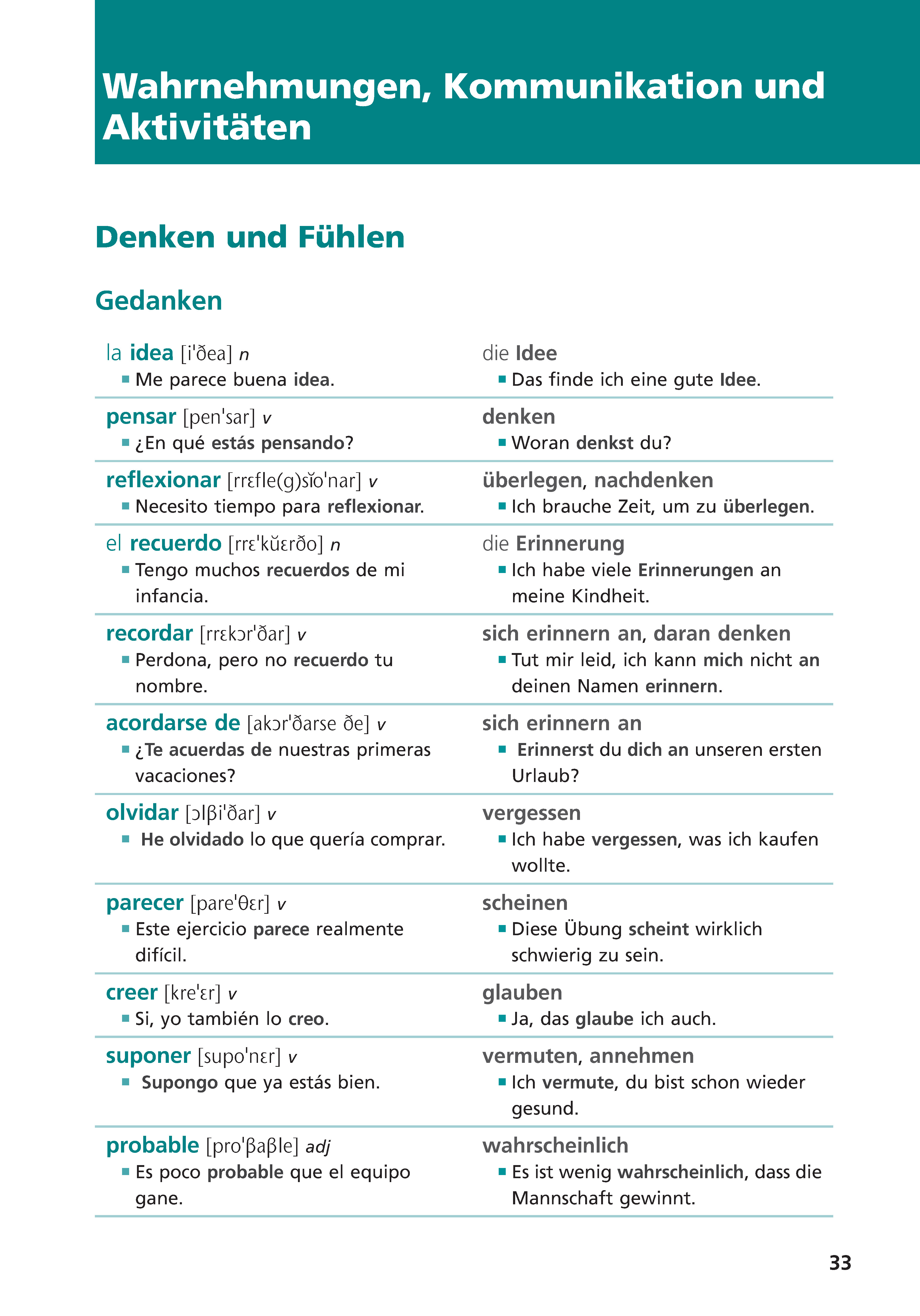 Basiswortschatz nach Themen geordnet, mit Wendungen und Beispielsätzen