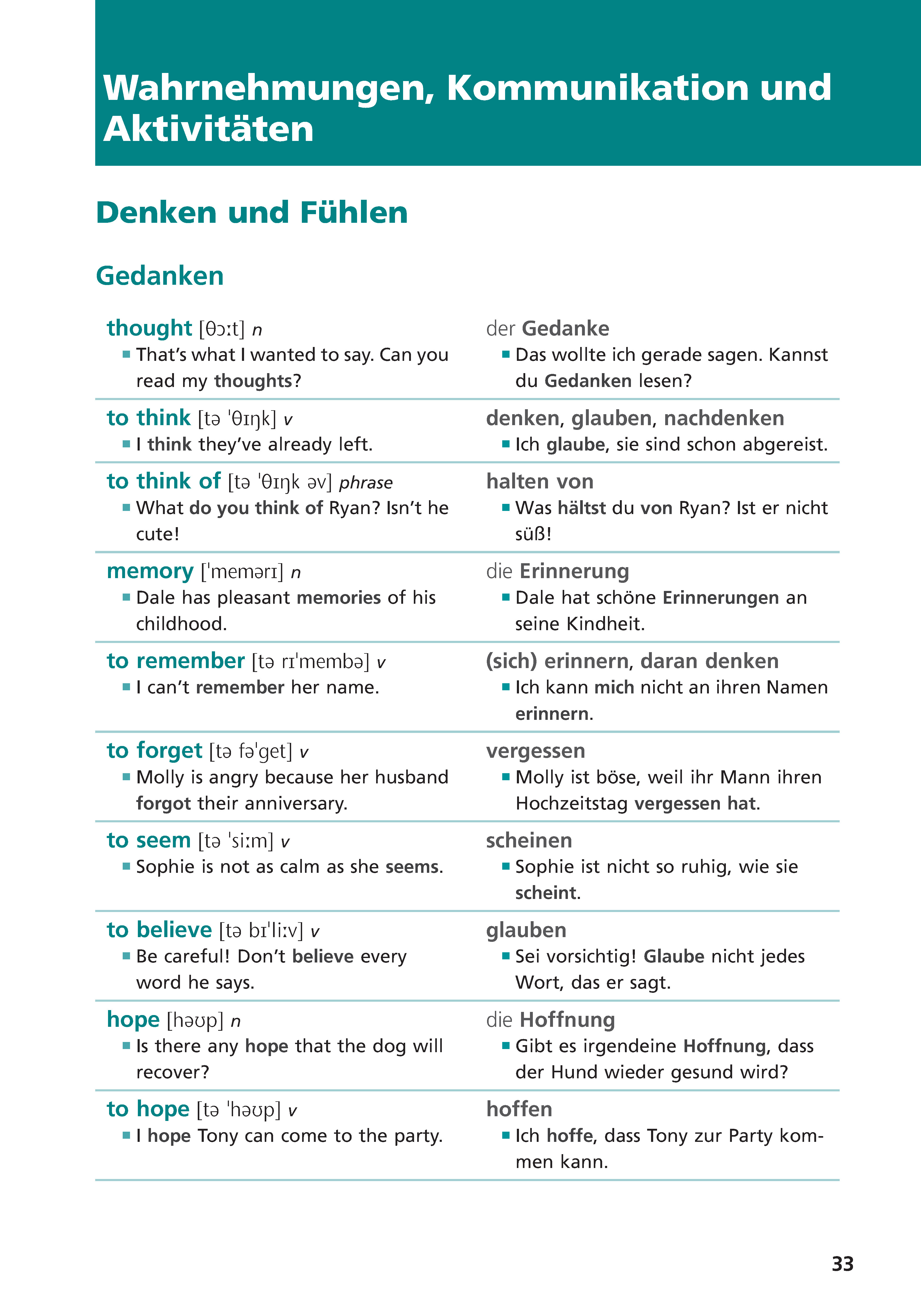 Basiswortschatz nach Themen geordnet, mit Wendungen und Beispielsätzen
