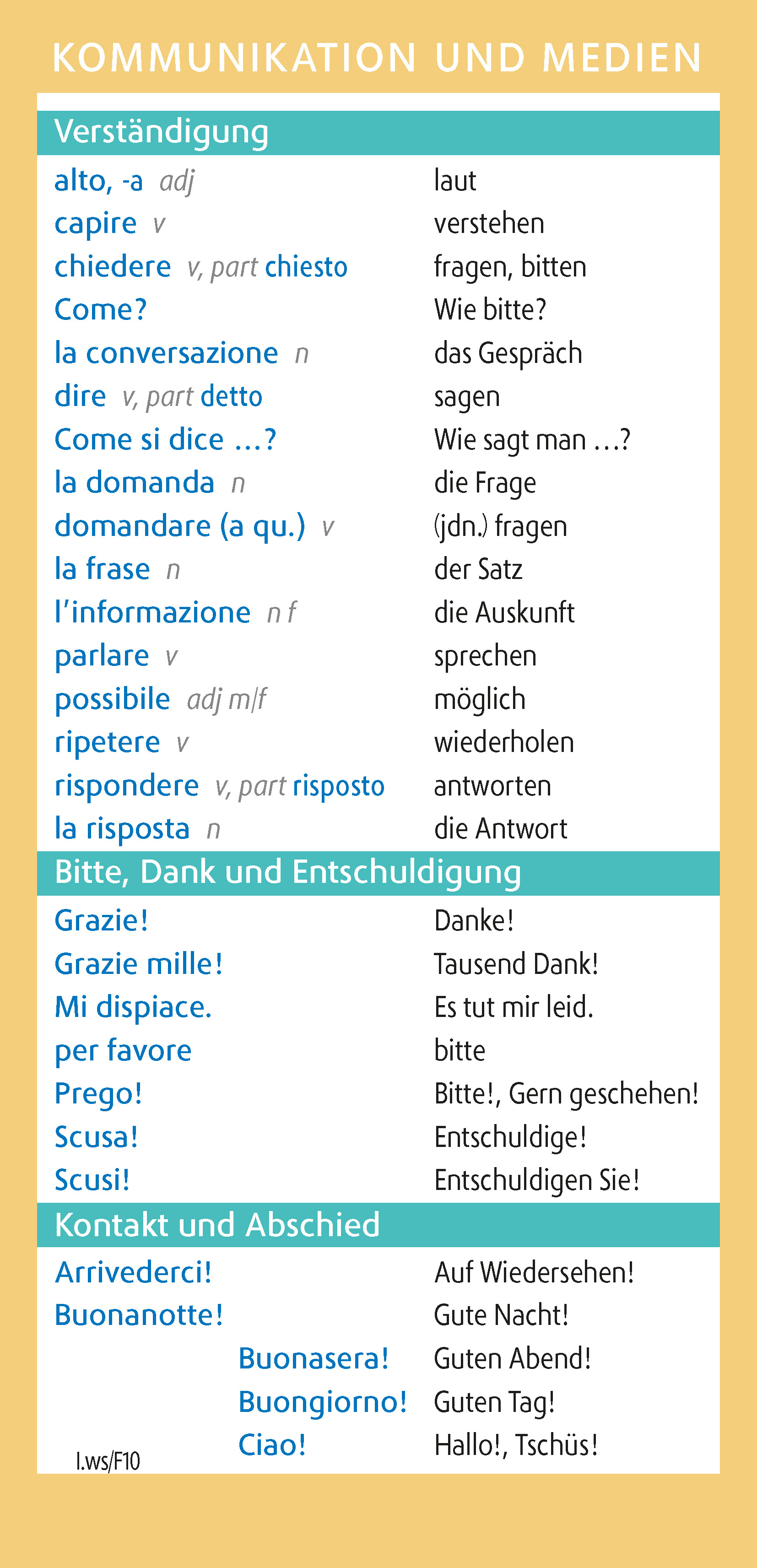| Schlagworte | auf einen Blick • Fächer • Grundwortschatz Italienisch • Italienisch lernen • Italienisch Wortschatz • Schule • Schule Italienisch • unterwegs lernen • vokabeln italienisch |