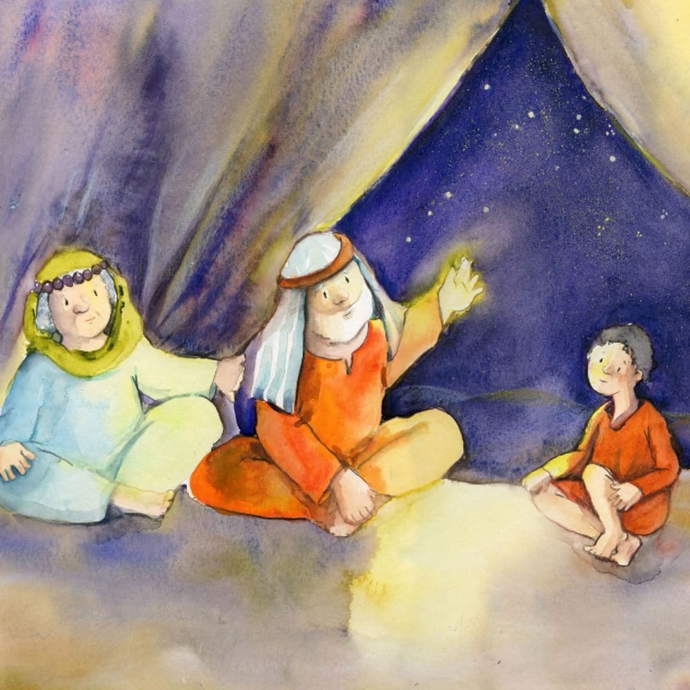 Abraham wacht auf. Hat Gott ihm da gerade aufgetragen, seinen Sohn Isaak zu opfern? Das Mini-Bilderbuch erzählt die Geschichte von der beinahen Opferung Isaaks.
