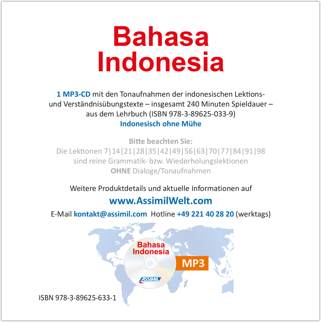 Bitte beachten Sie, dass die Tonaufnahmen ausschließlich in indonesischer Sprache sind. Sie benötigen das Lehrbuch (ISBN: 978-3-89625-033-9), um mit den Tonaufnahmen arbeiten zu können.