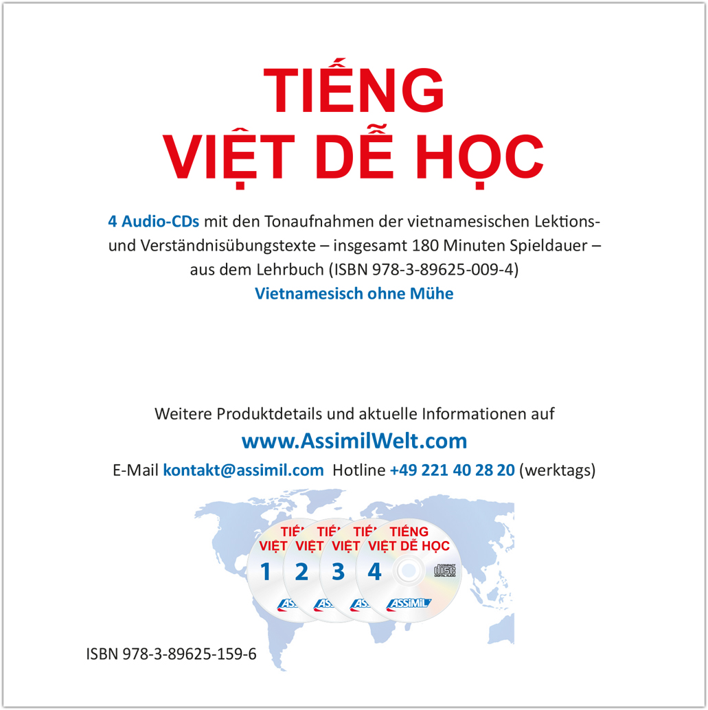 Die Audio-CDs (180 Minuten Spieldauer) enthalten die vietnamesischen Tonaufnahmen (Lektionstexte und Verständnisübungen) passend zum Lehrbuch "Vietnamesisch ohne Mühe". Die Aufnahmen wurden ausschließlich mit Muttersprachlern (allesamt professionelle Sprecherinnen und Sprecher) produziert. Die Sprechgeschwindigkeit ist dem jeweiligen Lektionsniveau angepasst.
