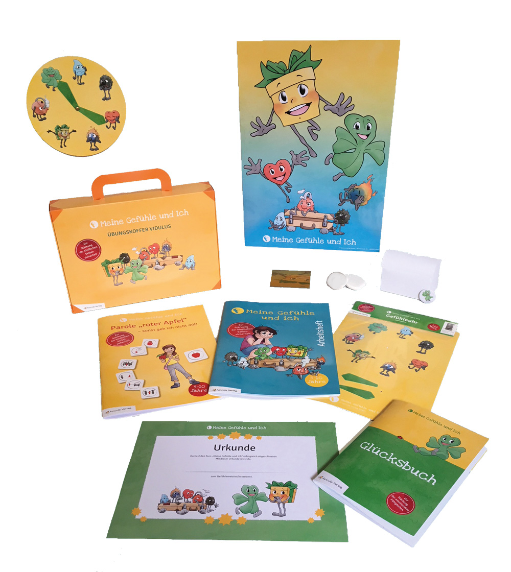 In dem Übungskoffer Vidulus sind alle Bücher, Hefte und Materialien für den Kurs "Meine Gefühle und Ich" eine Gewalt- und Missbrauchsprävention für Kinder in Kindergarten und Grundschulen von 5-10 Jahren.