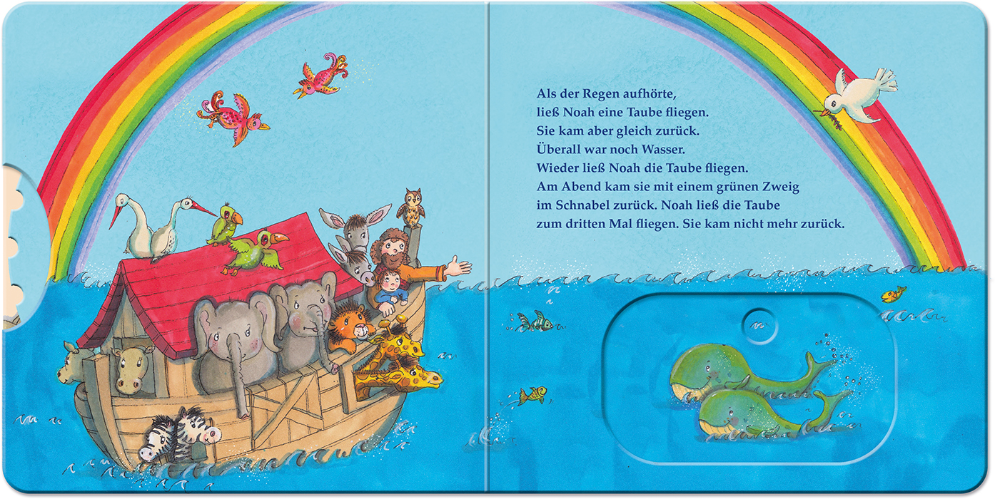 Mit Noah auf der ArcheFarbenfrohe Illustrationen und leicht verständliche Texte laden Kinder ein, die biblische Geschichte von der Arche Noah zu entdecken.Mit spielerischen Elementen zum Drehen und Schieben.