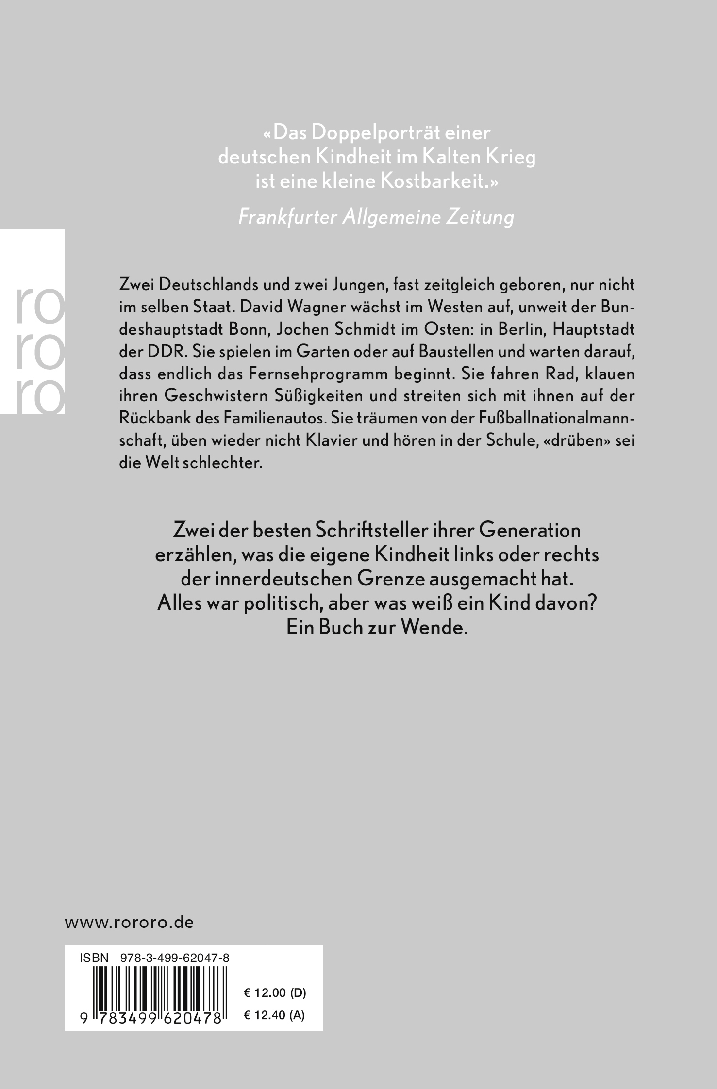 | Schlagworte | 9-Nov.-89 • 9. November 1989 • Alltagsgeschichte Deutschland • Alltagsleben Deutsche Teilung • Alltag vor der Wende • Aufwachsen DDR BRD • Aufwachsen im Sozialismus • Aufwachsen in Deutschland • beliebte Sachbücher 2024 • Berlin • Berliner Mauer • Bonner Republik • BRD DDR Vergleich • DDR • DDR Alltag • DDR BRD Unterschiede • DDR BRD Vergleich • DDR Erinnerungen • DDR Geschichte • DDR Kindheit • DDR Zeitzeugen • deutsch-deutsch • Deutsch Deutsche Beziehungen • deutsch-deutsche Geschichte • Deutsch Deutsche Geschichte • deutsch-deutsche Parallelgeschichten • Deutsch-Deutsche Zeitgeschichte • Deutsche Einheit • deutsche Geschichte 1970 • deutsche Geschichte 1970er • deutsche Geschichte 1980er • deutsche grenze • deutsche Historie 1980er • Deutsche Identität • deutsche Politik • Deutsche Teilung • Deutsche Wiedervereinigung • Erinnerung • Erzählung • Gegenwartsliteratur • Geteiltes Deutschland • Geteiltes Deutschland Berlin • Innerdeutsche Grenze • Kalter Krieg • Kalter Krieg Deutschland • Kindheit • Kindheit DDR BRD • Kindheit im geteilten Deutschland • Kindheit Ost West • Kindheitserinnerungen 1970er Jahre • Leben • Leben im Sozialismus • Leben in der DDR • Lebens in der BRD • Mauer • Mauerfall • Organtransplantation • Ost Berlin • Ostdeutsche Erinnerungen • ostdeutsche Geschichte • Ostdeutschland • Ost und West • Ost West Vergleich • Parallelbiografien Deutschland • Parallelbiografien Ost West • parallele Lebenswege DDR BRD • Plattenbauten DDR • Preis der Leipziger Buchmesse an David Wagner • Roman • Schneckenmühle • sommerurlaub reiselektüre • Vatertag Buchempfehlung • Weihnachtsgeschenk für Großeltern • Wende • Wendebuch • Wendekinder • Wendezeit • westdeutsche Kindheit • Westdeutschland • Wiedervereinigung • Zeitgeschichte Deutschland 1980er • Zeitzeugen Deutsche Teilung • Zeitzeugenliteratur • Zeitzeugen Literatur Geschenk • zwei Deutsche Staaten |