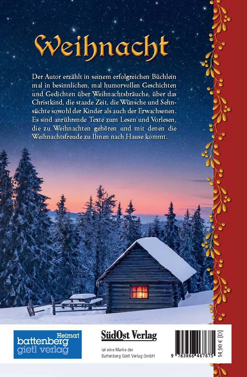 Geschichten und Gedichte vorgelesen zu bekommen ist immer ein großes Vergnügen, ganz besonders aber zur Weihnachtszeit. Pius Detterbeck erzählt in seinem erfolgreichen Büchlein mal in besinnlichen, mal humorvollen Geschichten und Gedichten über Weihnachtsbräuche, das Christkind, die staade Zeit, die Wünsche und Sehnsüchte nicht nur der Kinder sondern auch der Erwachsenen. Es sind anrührende Texte zum Lesen und Vorlesen, die zu Weihnachten gehören und mit denen die Weihnachtsfreude zu Ihnen nach Hause kommt. Genießen Sie mit diesem Büchlein gemütliche Abende im Kreis der Familie, lesen Sie vor, lassen Sie sich vorlesen und tauchen Sie ein in weihnachtliche Geschichten, die Kinderaugen zum Glänzen bringen und die Wartezeit bis Heilig Abend besinnlich macht.