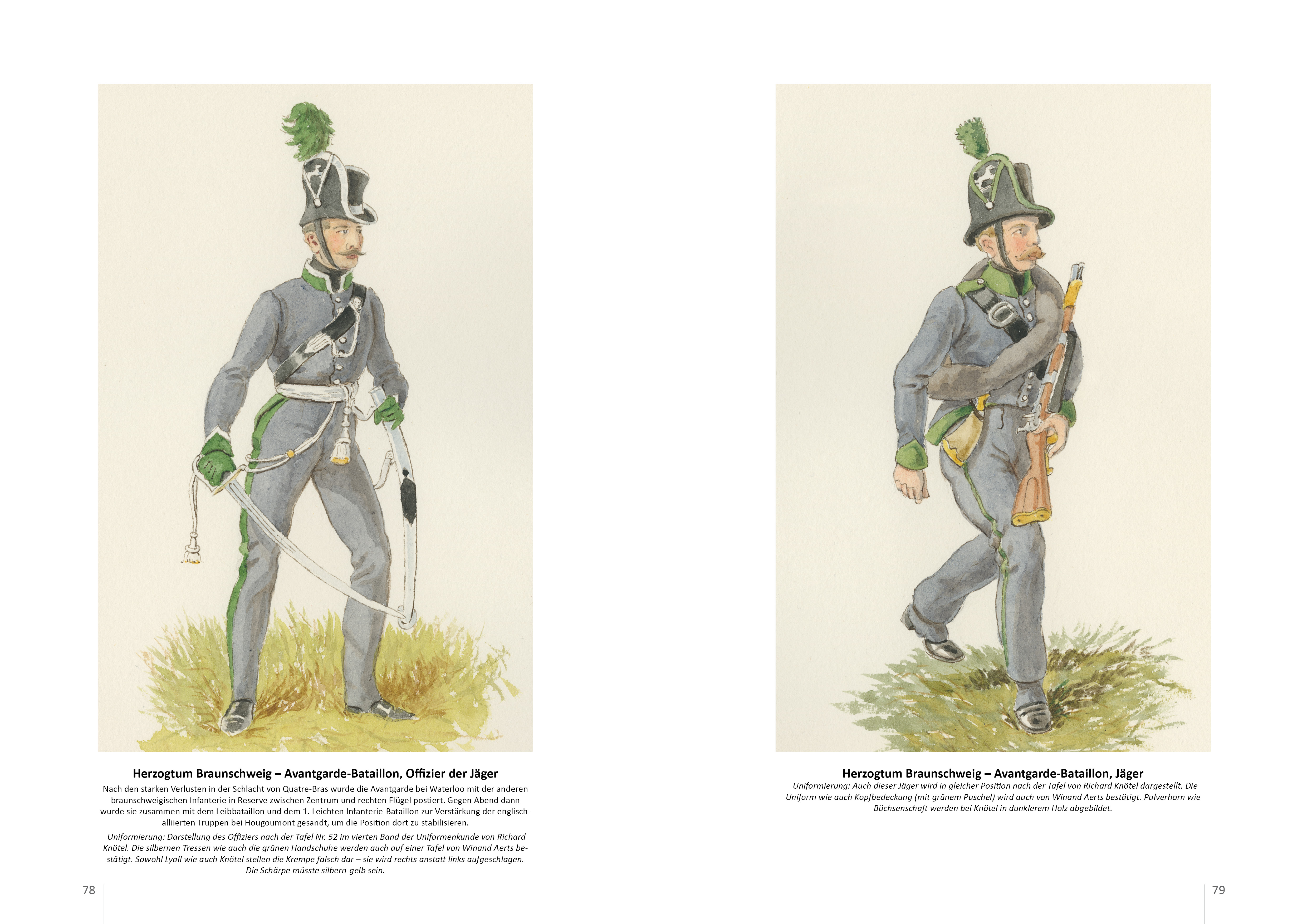 Der im ersten Band vorgestellten Armee Englands folgen nun die ausländischen Truppenteile, die mit dem Herzog von Wellington am Feldzug in den Niederlanden teilnahmen. Neben den hannoverschen Truppenteilen, entweder als King's German Legion (KGL) oder als Neuformation, die ab 1813 im Königreich Hannover errichtet wurden, sind dies vor allem die Truppen des Königreichs der Niederlande. Dieses bestand nicht nur aus originär holländischen, sondern auch aus belgischen Einheiten, dazu noch ein kleines Nassauisches Kontingent. Den kleinsten Truppenkörper stellte das Kontingent des Herzogs von Braunschweig.Diese alliierten Truppen stellten in der Armee Wellingtons den größten Teil, denn nur etwa 36% der Truppen in den Niederlanden kamen aus Großbritannien. Zählt man die eigentlich in englischem Sold stehende King's German Legion mit ihren 10% hinzu, bleiben jedoch noch über 50% der Armee Wellingtons, die nicht in britischem Sold stehen. Aus dem faktenreichen Band von Adkins über die Schlacht von Waterloo geht hervor, dass etwa 45% der 1815 unter Wellington vereinten Truppenteile deutsch sprachen.Wie schon im ersten Band werden die Tafeln des Künstlers Charles Lyall möglichst einer Einheit zugeordnet und gemäß aktuellem, uniformkundlichen Kenntnisstand kommentiert. Wenn eine Vorlage des Künstlers erkennbar ist, wird diese ebenfalls in der Tafelkommentierung erwähnt.Damit dem Leser ein genereller Eindruck der Struktur wie auch des Aussehens der Alliierten Truppenteile Wellingtons gegeben werden kann, ist dem Tafelteil ein umfangreicher Abschnitt mit Beschreibung von Formation und Uniformierung vorangestellt.Die im ersten Band begonnene Kurzbeschreibung der Schlacht von Waterloo wird in diesem Band nicht aufgenommen. Stattdessen wird die Schlacht bei Quatre Bras vom 16. Juni 1815 beschrieben, bei der die Truppen der Niederlande und Braunschweigs einen erheblichen Anteil daran hatten, den Vorstoß Marschall Neys auf Brüssel aufzuhalten. Begleitet wird diese Beschreibung durch die Karten aus dem Atlas von Siborne.