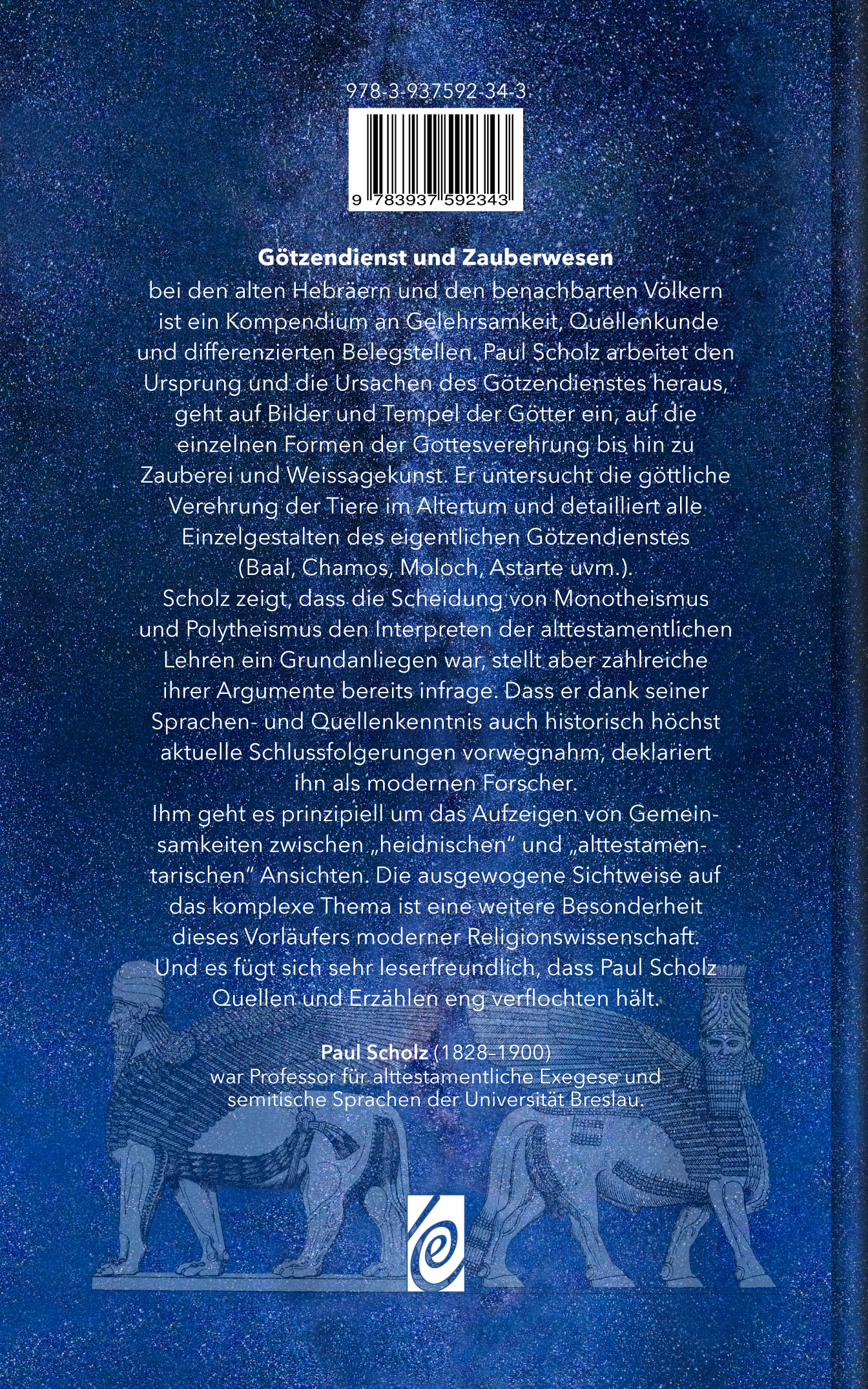 Paul Scholz (1828–1900) war Professor für alttestamentliche Exegese und semitische Sprachen der katholisch-theologischen Fakultät Breslau. Außerdem wurde er 1852 zum Priester geweiht. Beim vorliegenden Werk geht es ihm um das Verstehen bzw. das Verständnis der israelitischen Religionsgeschichte und des Götzendienstes und Zauberwesens der alten Hebräer. Er erforschte den Einfluss der vorderasiatischen Völker auf die religiösen Verhältnisse in Palästina, indem er die ihm damals vorliegenden Quellen des Altertums bis hin zu den ägyptischen und assyrischen Schriften studierte. Damit durchdringt und offenlegt er komplexe Inhalte, die im Götzendienst eingeschrieben sind. Eine unsachliche oder wertende Position ist nicht im Sinne des Autors. Vielmehr geht es ihm um ausgewogene Sichtweisen. Ein Ansatz, der ihn als modernen Forscher deklariert.