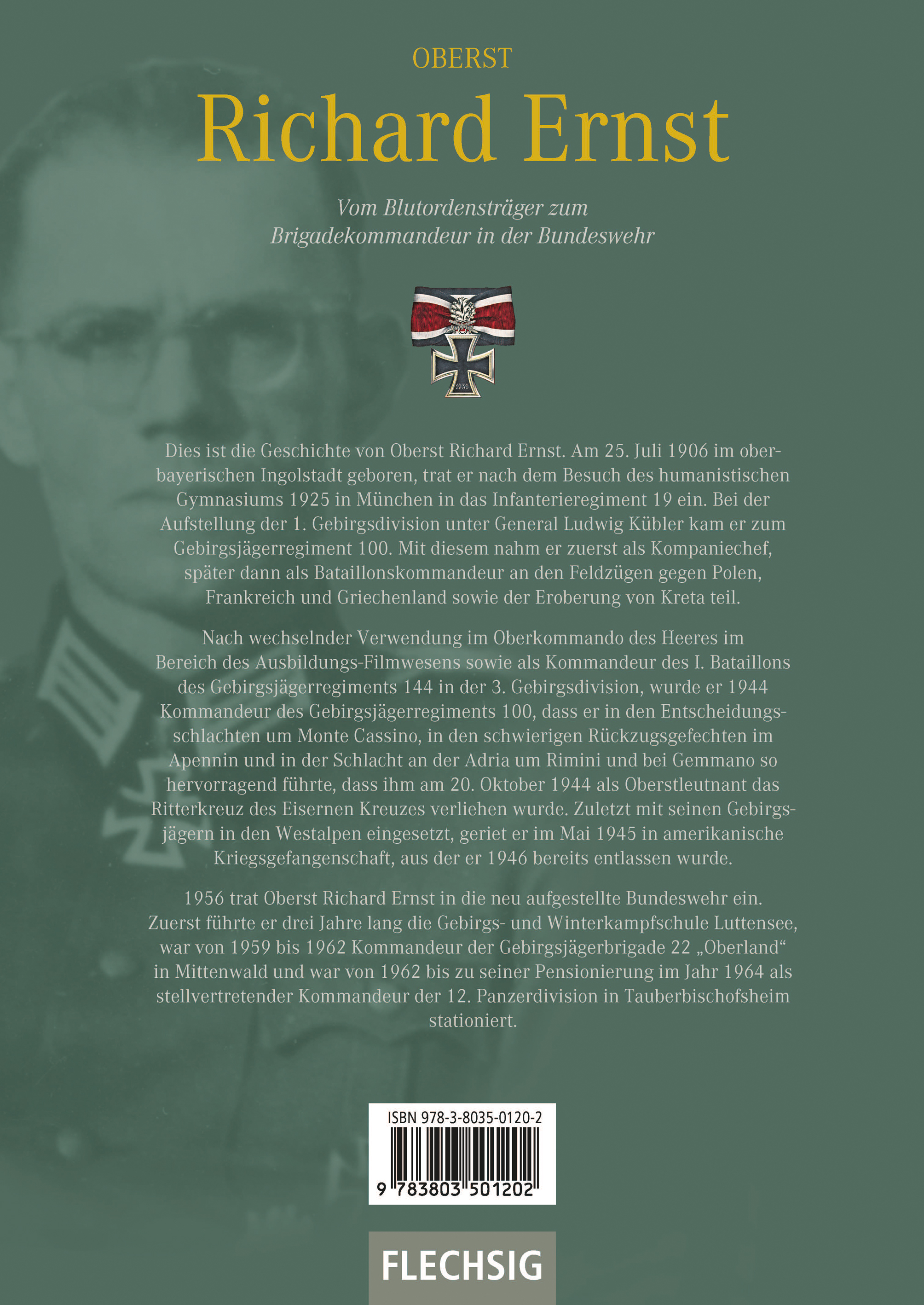 Dies ist die Geschichte von Oberst Richard Ernst. Am 25. Juli 1906 im oberbayerischen Ingolstadt geboren, trat er nach dem Besuch des humanistischen Gymnasiums 1925 in München in das Infanterieregiment 19 ein. Bei der Aufstellung der 1. Gebirgsdivision unter General Ludwig Kübler kam er zum Gebirgsjägerregiment 100. Mit diesem nahm er zuerst als Kompaniechef, später dann als Bataillonskommandeur an den Feldzügen gegen Polen, Frankreich und Griechenland sowie der Eroberung von Kreta teil.