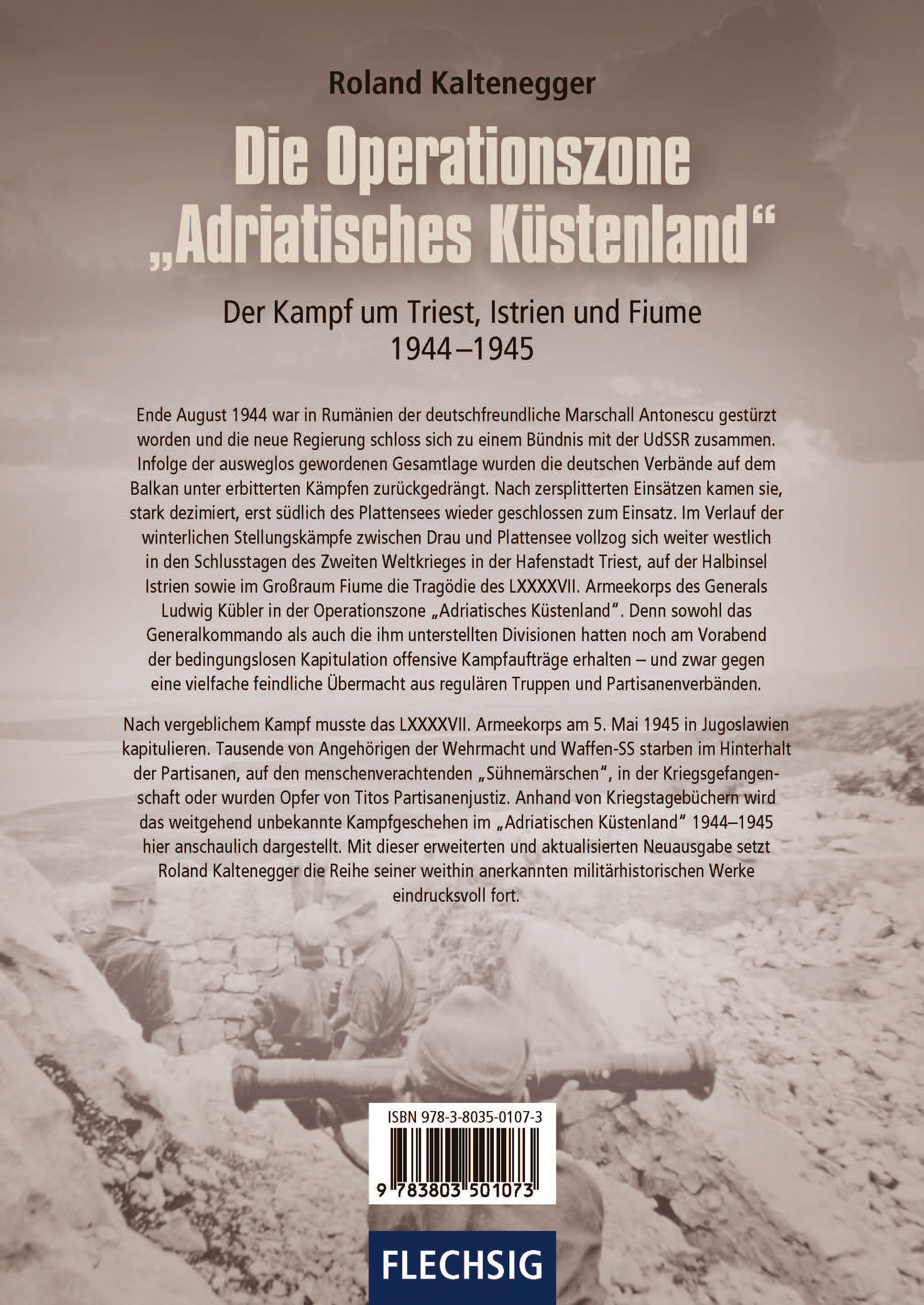 Ende August 1944 war in Rumänien der deutschfreundliche Marschall Antonescu gestürzt worden und die neue Regierung schloss sich zu einem Bündnis mit der UdSSR zusammen. Infolge der ausweglos gewordenen Gesamtlage wurden die deutschen Verbände auf dem Balkan unter erbitterten Kämpfen zurückgedrängt. Nach zersplitterten Einsätzen kamen sie, stark dezimiert, erst südlich des Plattensees wieder geschlossen zum Einsatz. Im Verlauf der winterlichen Stellungskämpfe zwischen Drau und Plattensee vollzog sich weiter westlich in den Schlusstagen des Zweiten Weltkrieges in der Hafenstadt Triest, auf der Halbinsel Istrien sowie im Großraum Fiume die Tragödie des LXXXXVII. Armeekorps des Generals Ludwig Kübler in der Operationszone "Adriatisches Küstenland". Denn sowohl das Generalkommando als auch die ihm unterstellten Divisionen hatten noch am Vorabend der bedingungslosen Kapitulation offensive Kampfaufträge erhalten - und zwar gegen eine vielfache feindliche Übermacht aus regulären Truppen und Partisanenverbänden. Nach vergeblichem Kampf musste das LXXXXVII. Armeekorps am 5. Mai 1945 in Jugoslawien kapitulieren. Tausende von Angehörigen der Wehrmacht und Waffen-SS starben im Hinterhalt der Partisanen, auf den menschenverachtenden "Sühnemärschen", in der Kriegsgefangenschaft oder wurden Opfer von Titos Partisanenjustiz. Anhand von Kriegstagebüchern wird das weitgehend unbekannte Kampfgeschehen im "Adriatischen Küstenland" 1944/1945 hier anschaulich dargestellt. Mit dieser erweiterten und aktualisierten Neuausgabe setzt Roland Kaltenegger die Reihe seiner weithin anerkannten militärhistorischen Werke eindrucksvoll fort.