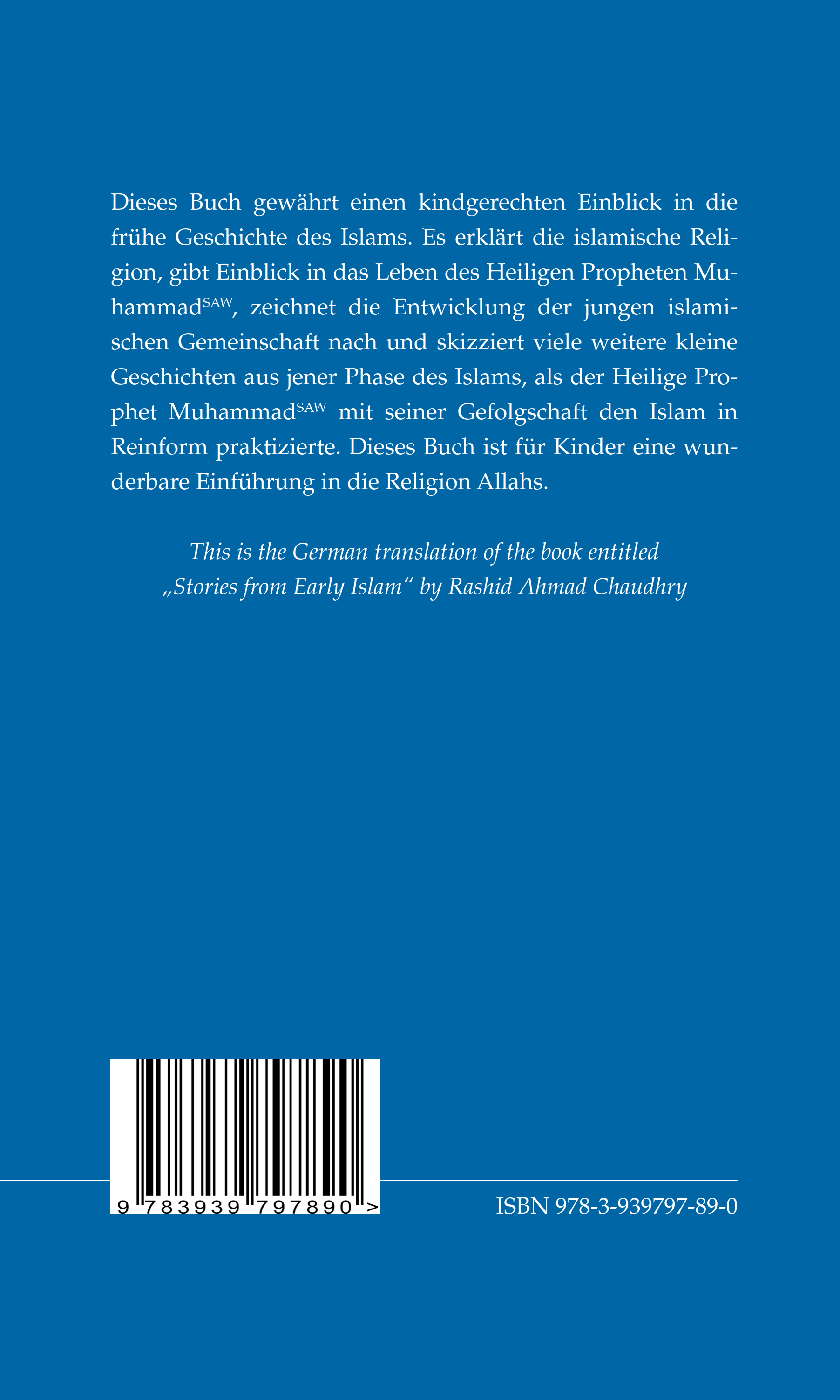 Dieses Buch gewährt einen kindgerechten Einblick in die frühe Geschichte des Islam. Es erklärt die islamische Religion, gibt Einblick in das Leben des Heiligen Propheten Muhammad (saw), zeichnet die Entwicklung der jungen islamischen Gemeinschaft nach und skizziert viele weitere kleine Geschichten aus jeder Phase des Islam, als der Heilige Prophet Muhammad (saw) mit seiner Gefolgschaft den Islam in Reinform praktizierte. Dieses Buch ist für Kinder eine wunderbare Einführung in die Religion Allahs.