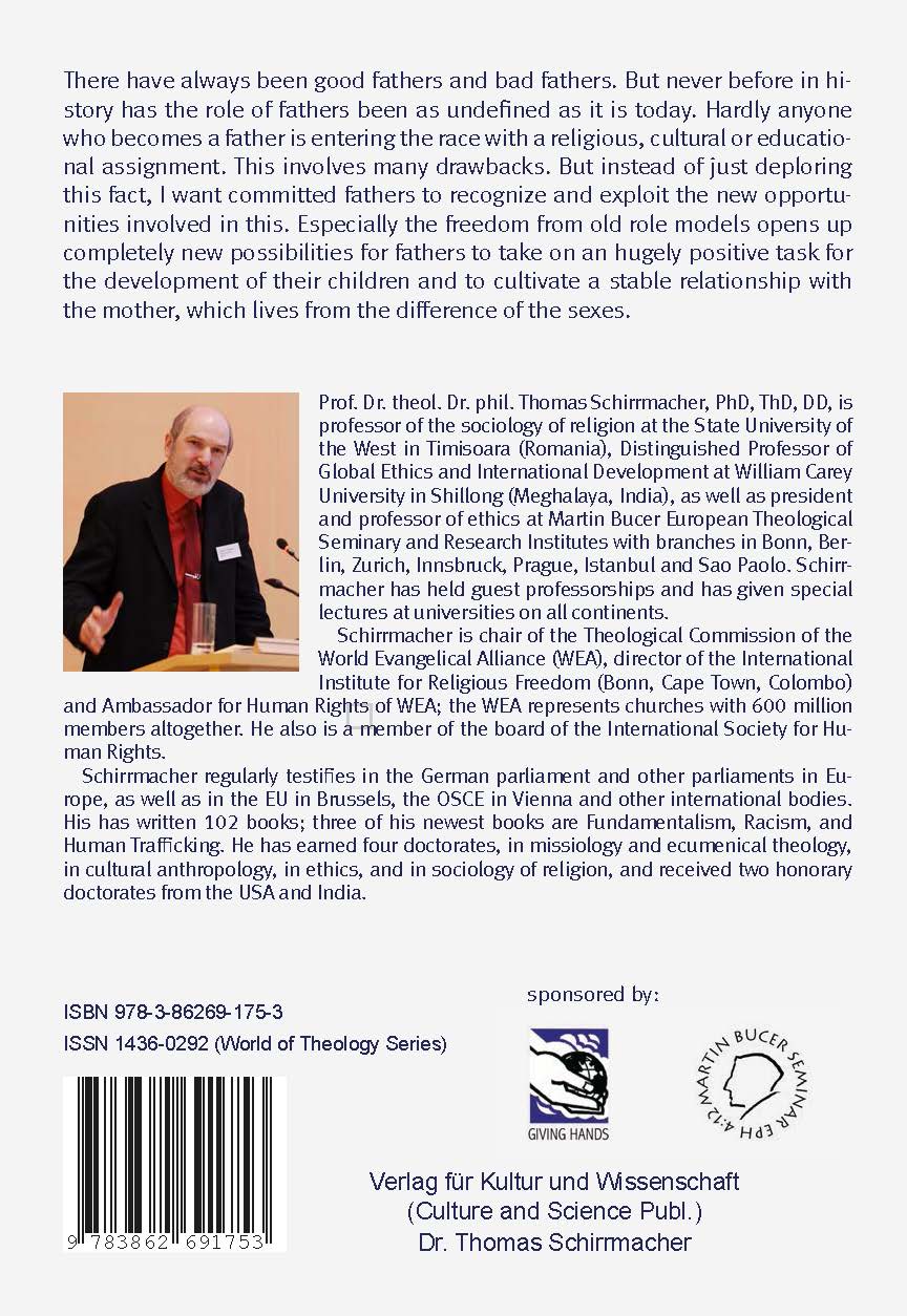Prof. Dr. theol. Dr. phil. Thomas Schirrmacher, PhD, ThD, DD, is professor of the sociology of religion at the State University of the West in Timisoara (Romania), Distinguished Professor of Global Ethics and International Development at William Carey University in Shillong (Meghalaya, India), as well as president and professor of ethics at Martin Bucer European Theological Seminary and Research Institutes with branches in Bonn, Ber- lin, Zurich, Innsbruck, Prague, Istanbul and Sao Paolo. Schirr- macher has held guest professorships and has given special lectures at universities on all continents. Schirrmacher is chair of the Theological Commission of the World Evangelical Alliance (WEA), director of the International Institute for Religious Freedom (Bonn, Cape Town, Colombo) and Ambassador for Human Rights of WEA; the WEA represents churches with 600 million members altogether. He also is a member of the board of the International Society for Hu- man Rights. Schirrmacher regularly testifies in the German parliament and other parliaments in Eu- rope, as well as in the EU in Brussels, the OSCE in Vienna and other international bodies. His has written 102 books; three of his newest books are Fundamentalism, Racism, and Human Trafficking. He has earned four doctorates, in missiology and ecumenical theology, in cultural anthropology, in ethics, and in sociology of religion, and received two honorary doctorates from the USA and India.