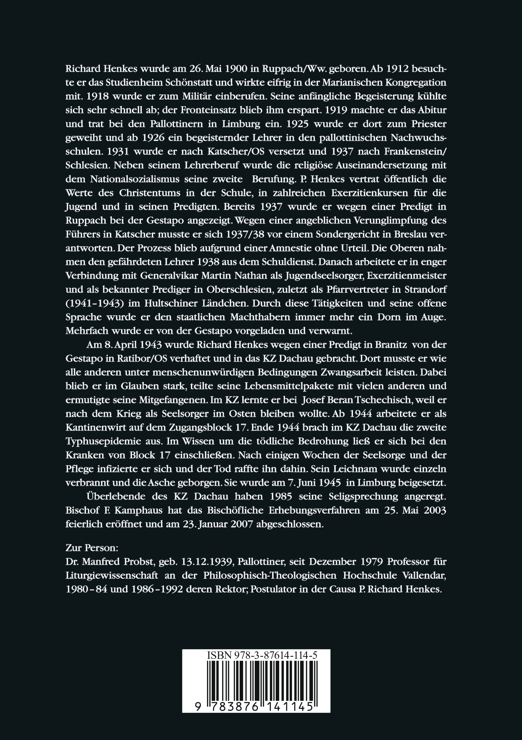 Das Buch beschreibt den Pallottiner-Pater und Märtyrer P. Richard Henkes.