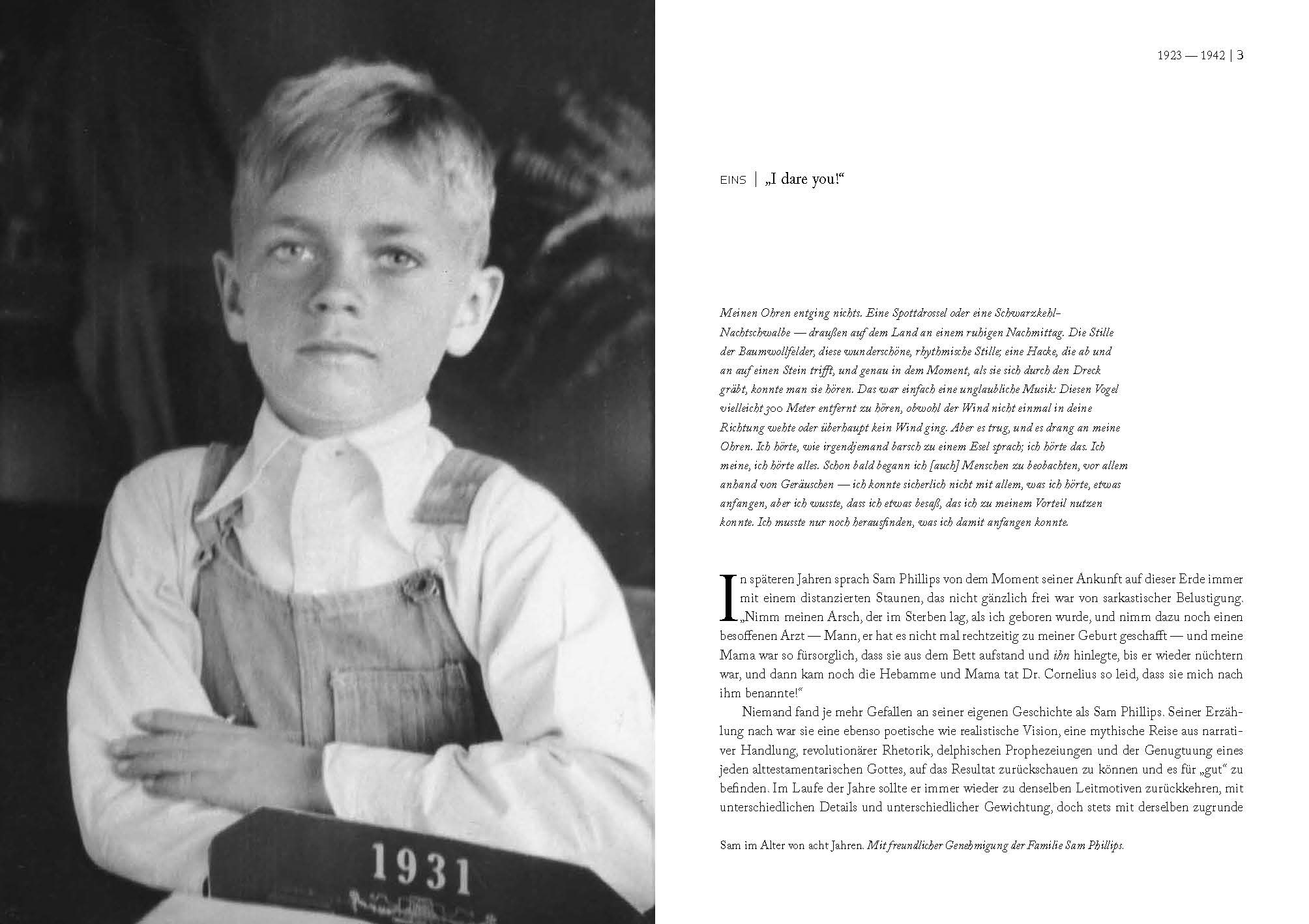 Besonders spannend ist dabei, auch bisher eher unbekannte Seiten von Sam Phillips kennen zu lernen. Seine große Liebe zum Radio, seine Motivation, im Tonstudio immer ausgefeiltere Aufnahmetechniken zu entwickeln oder sein Drang zu waghalsigen Expansionsmanövern weit über die Grenzen seiner Wahlheimatstadt Memphis hinaus. Gleichzeitig zeigt Peter Guralnick aber auch die Schattenseiten von Sam Phillips auf, die es im Wirken außergewöhnlicher Persönlichkeiten vielleicht immer gibt. Wir lernen in diesem Buch einen Geschäftsmann mit einem unvorstellbaren Antrieb und einem unbändigen Durchhaltevermögen kennen, aber natürlich auch einen ganz persönlichen Sam Phillips.