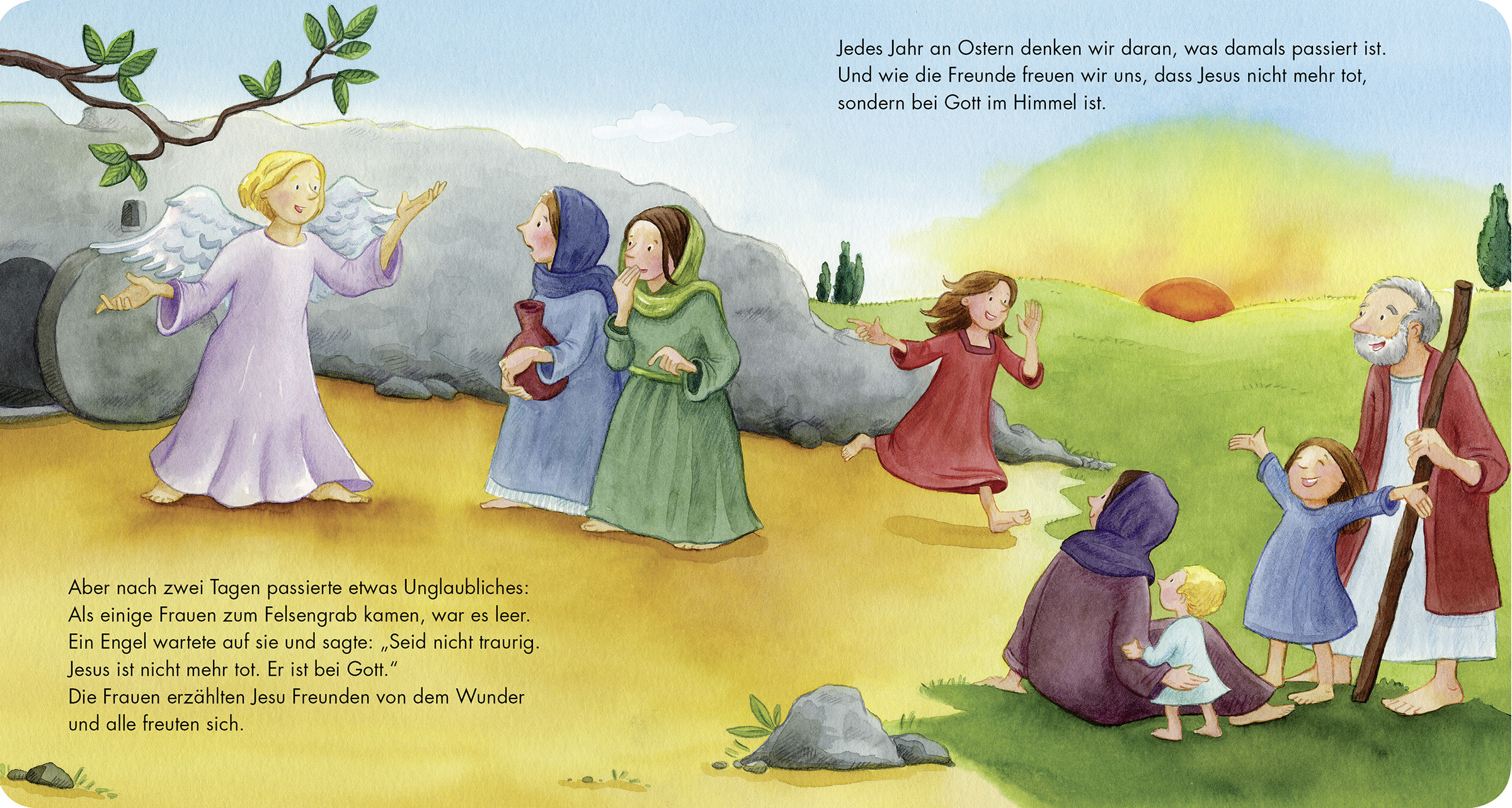 Jedes Jahr an Ostern erinnern sich Groß und Klein an die letzten Tage im Leben Jesu, wie sie die biblische Ostergeschichte beschreibt: an den Einzug Jesu in Jerusalem und das letzte Abendmahl mit seinen Freunden bis hin zu seiner Auferstehung. Die kurzen, prägnanten Sätze dieser Nacherzählung und die modernen Illustrationen machen die Geschichte schon den jüngsten Lesern verständlich.