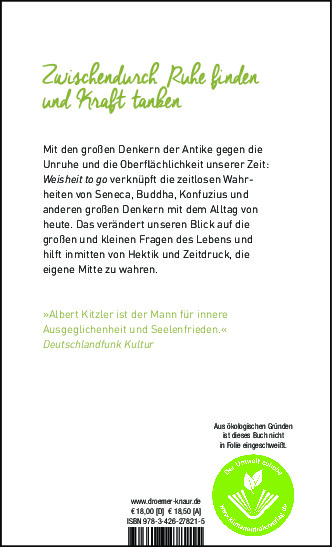 Der Unruhe, dem Stress und der Oberflächlichkeit unseres Alltags setzt Albert Kitzler die zeitlosen Wahrheiten von Seneca, Sokrates, Buddha, Konfuzius, Laotse und anderen Philosophen aus Rom, Griechenland, Indien und China entgegen.