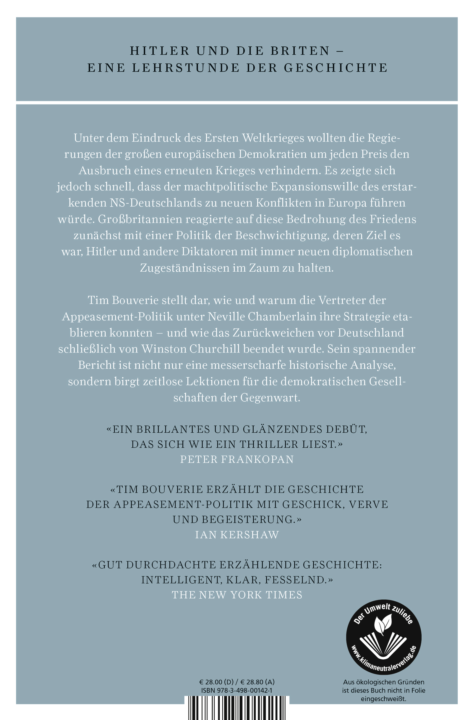 Der englische Historiker Tim Bouverie stellt den Erkenntnisprozess in Großbritannien während der 1930er Jahre dar, das lange unsicher war, wie es mit Deutschland und dessen politischen Provokationen umgehen sollte. Sein Buch ist der spannende Bericht einer historischen Eskalation und schildert den historischen Hintergrund zum Netflix-Film "München - Im Angesicht des Krieges".