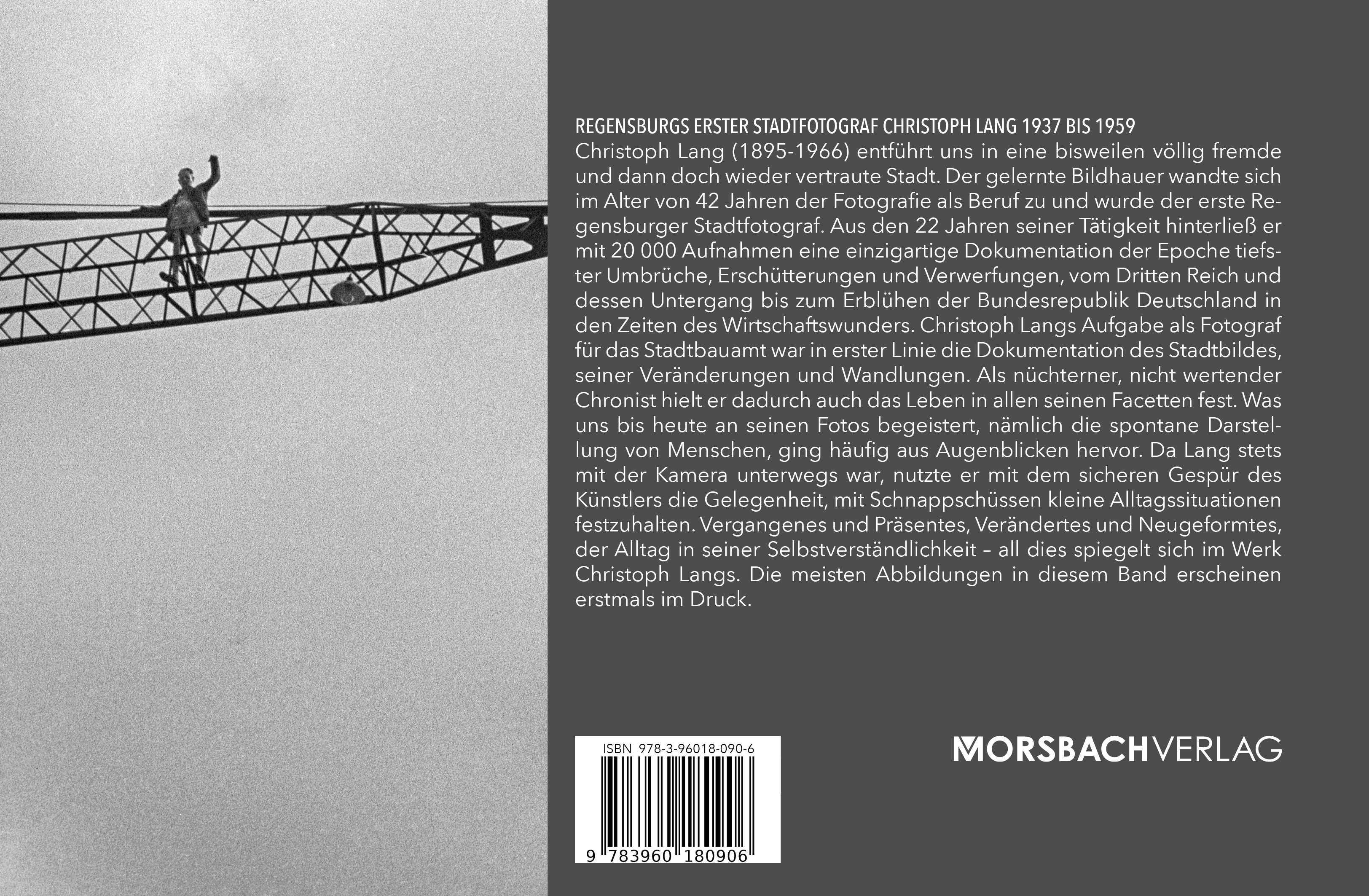 Regensburgs erster Stadtfotograf Christoph Lang 1937 bis 1959 Christoph Lang (1895-1966) entführt uns in eine bisweilen völlig fremde und dann doch wieder vertraute Stadt. Der gelernte Bildhauer wandte sich im Alter von 42 Jahren der Fotografie als Beruf zu und wurde der erste Regensburger Stadtfotograf. Aus den 22 Jahren seiner Tätigkeit hinterließ er mit 20 000 Aufnahmen eine einzigartige Dokumentation der Epoche tiefster Umbrüche, Erschütterungen und Verwerfungen, vom Dritten Reich und dessen Untergang bis zum Erblühen der Bundesrepublik Deutschland in den Zeiten des Wirtschaftswunders. Christoph Langs Aufgabe als Fotograf für das Stadtbauamt war in erster Linie die Dokumentation des Stadtbildes, seiner Veränderungen und Wandlungen. Als nüchterner, nicht wertender Chronist hielt er dadurch auch das Leben in allen seinen Facetten fest. Was uns bis heute an seinen Fotos begeistert, nämlich die spontane Darstellung von Menschen, ging häufig aus Augenblicken hervor. Da Lang stets mit der Kamera unterwegs war, nutzte er mit dem sicheren Gespür des Künstlers die Gelegenheit, mit Schnappschüssen kleine Alltagssituationen festzuhalten. Vergangenes und