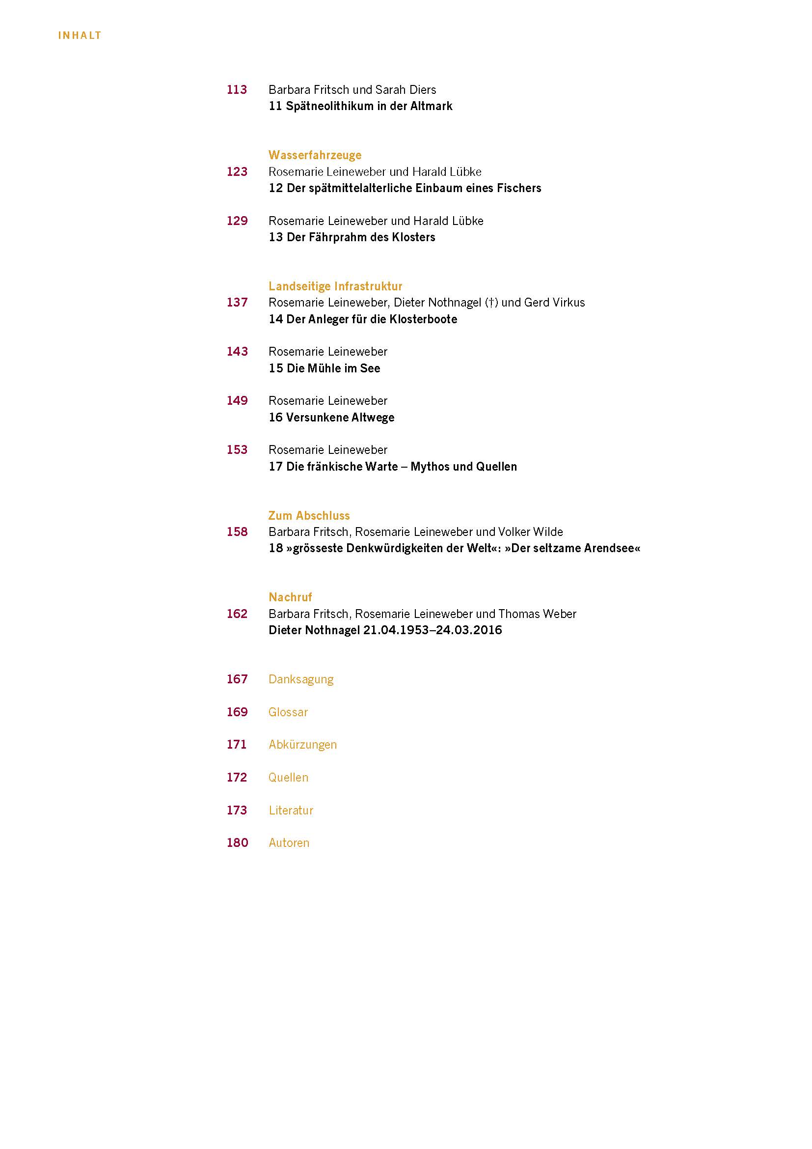 | Schlagworte | Altwege • Arendsee • Botanik • Echolot • Fischreste • Fischzaun • Geologie • Klosteranleger • Mühle • Sediment • Spätneolithikum • Unterwasserarchäologie • Vegetation |