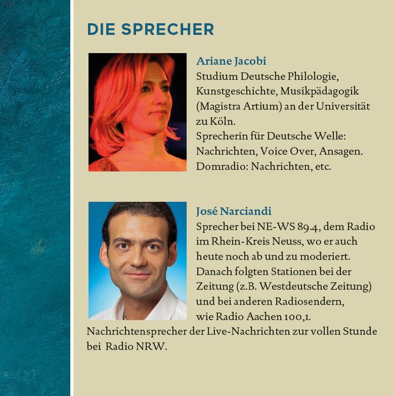 | Schlagworte | Ariane Jacobi • Bibel • Bibelvorlesung • CD • Einheitsübersetzung • Hörbuch • José Narciandi • Neues Testament • Pendler • Sehbehinderte |