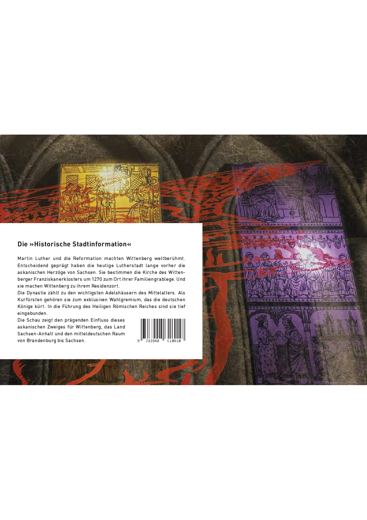 | Schlagworte | Adelsgeschlecht • Archäologie • Askanier • Ausstellung • Dynastie • Franziskanerkloster • Geschichte • Grablege • Heiliges Römisches Reich • Historische Stadtinformation • Kurfürsten • Luther • Lutherstadt • Mittelalter • Mitteldeutschland • Reformation • Residenz • Wittenberg |