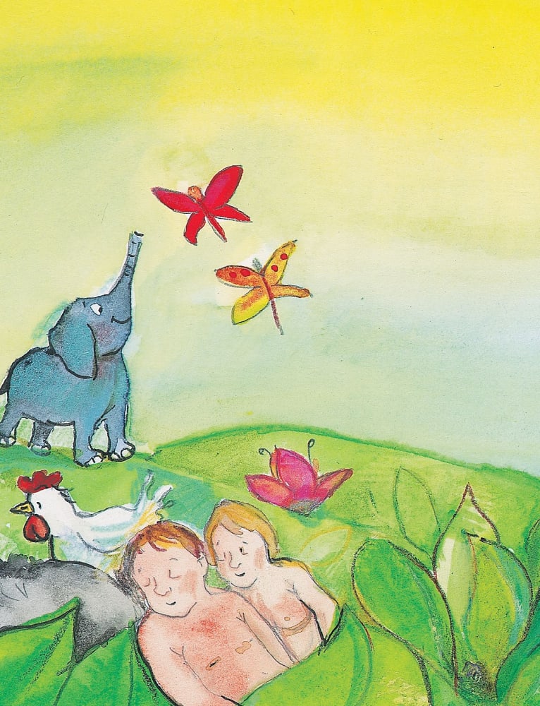 - Wie Gott den Tag und die Nacht, Land und Wasser, die Sterne, Bäume und Pflanzen, Tiere und Menschen erschuf- nahe am Bibel-Text in kurzen Sätzen erzählt